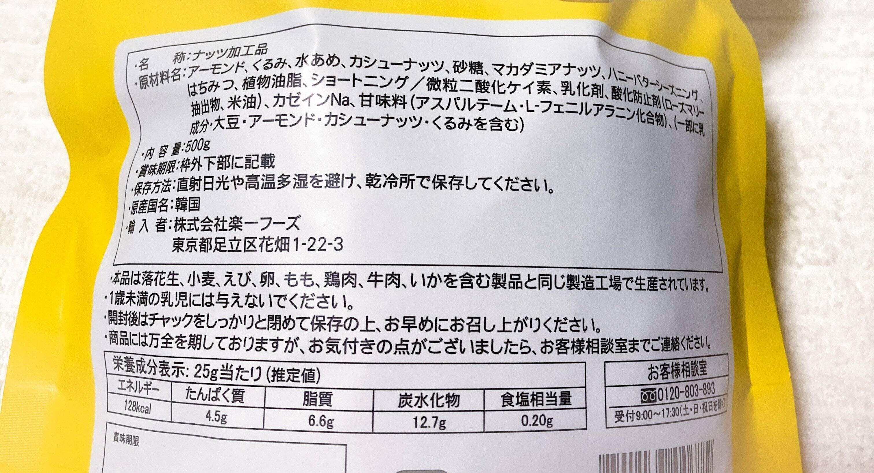 コストコのハニーバターミックスナッツは、楽一フーズによる韓国からの輸入商品です。ハニーバターアーモンドは韓国定番お土産なので、他のメーカーからも多数販売されています。少量パックを買う場合はメーカーも気にしてみてください。
