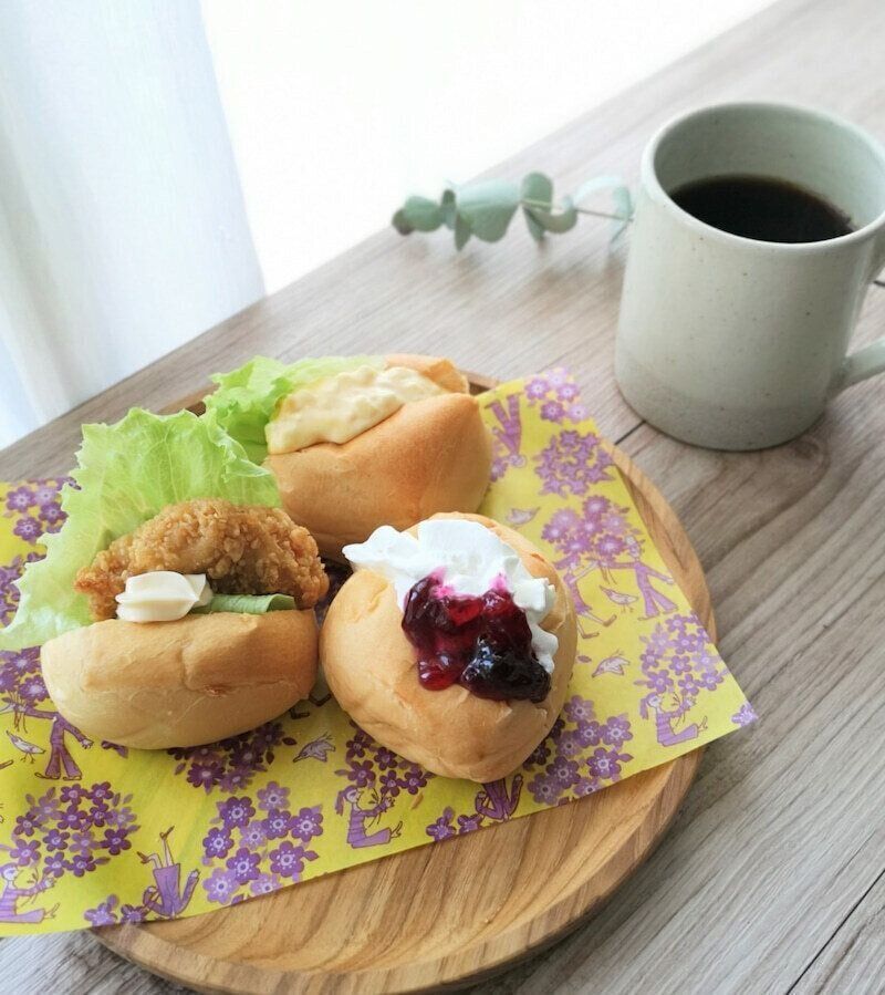 切り込みを入れて、ホイップとジャムを挟めば、甘いサンドイッチに!ゆで卵や、からあげなどを挟めばお惣菜系サンドイッチも楽しめます。