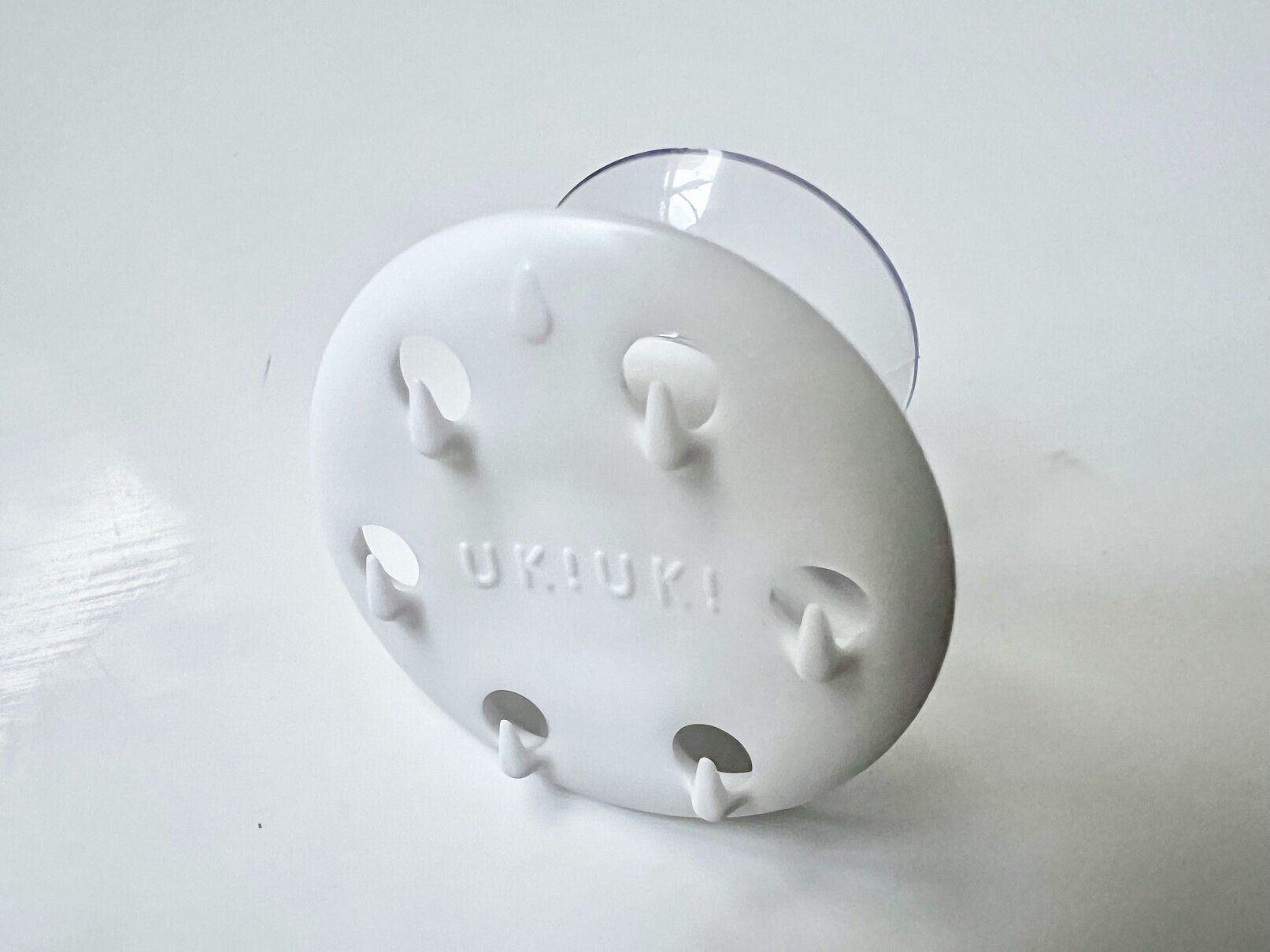 ポイントは吸盤に対して少し傾斜しているところ。スポンジを斜め置きすることで角に水分が集中し、しっかりと水切れをしてくれるのです。スポンジの菌の繁殖も抑えられますね。