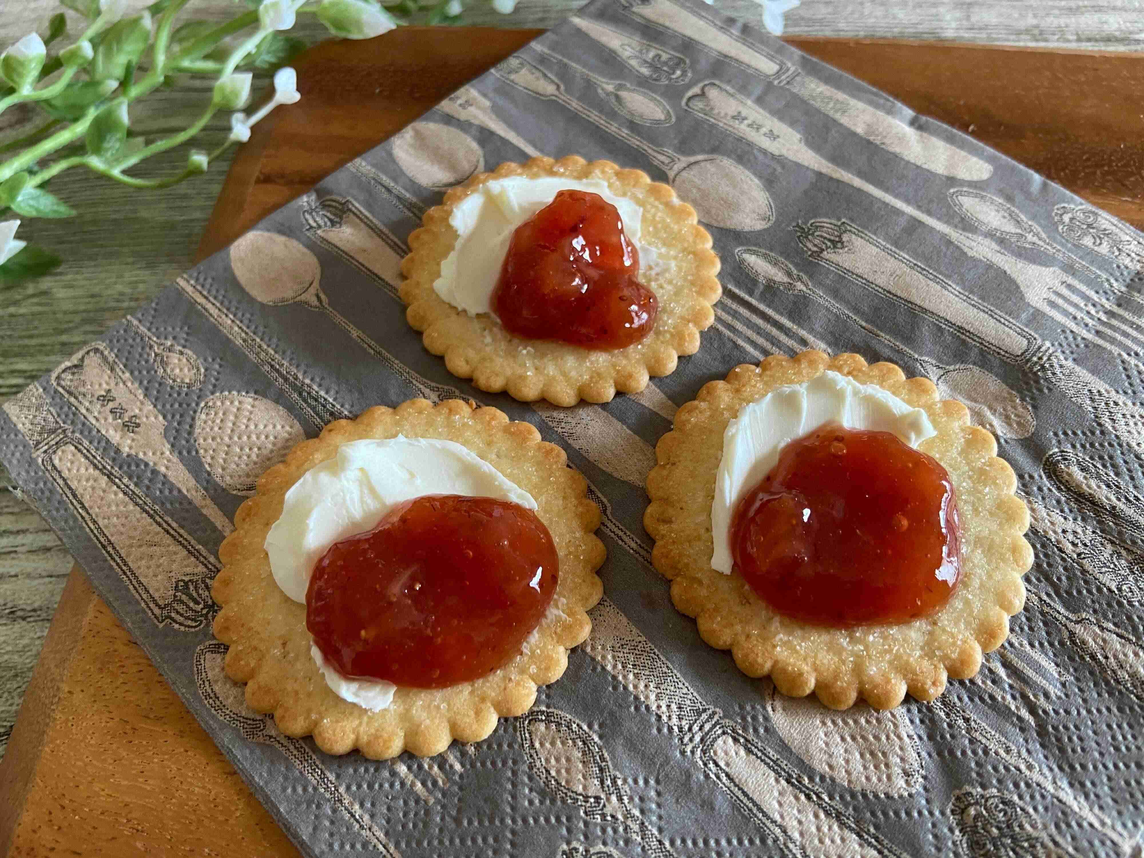 食パンやバゲット、クラッカーなどにのせて食べるのも定番の楽しみ方。そのままスプレッドだけをのせてもいいですが、クリームチーズとも相性抜群なので合わせてのせると酸味と甘みのバランスが楽しめる一品に。
