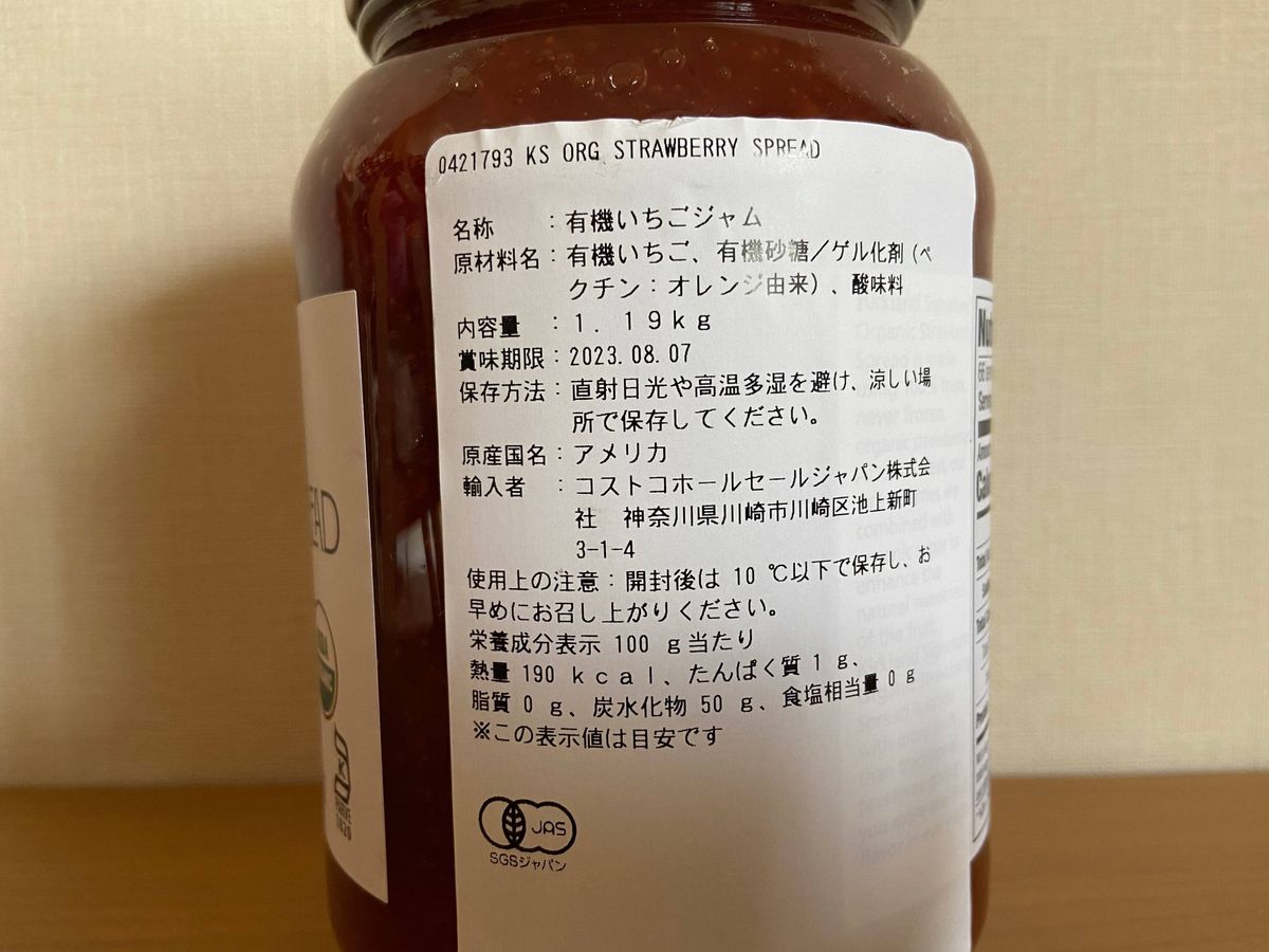価格は1,558円、100g当たりに換算すると約131円。他店で販売されているオーガニックのストロベリージャムは安いもので100g当たり200円ほどだったので、コストコのものはコスパがかなり高いといえます。