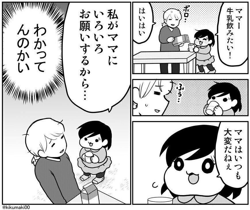 ママが忙しい理由は、「私がママにいろいろお願いするから」と娘さんに言われた瞬間、きくまきさんはどのような気持ちになったのでしょうか。