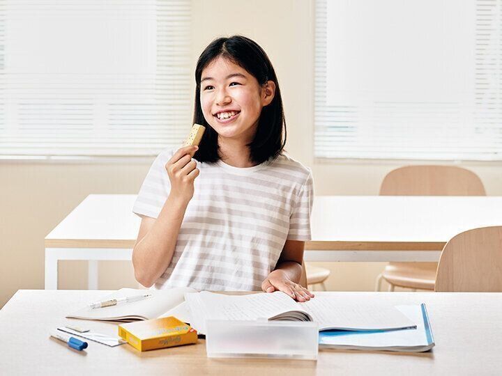 「子どもが通っている塾は休憩時間が短いみたい……。でもカロリーメイトなら、小腹がすいたときにサッと食べられるから、子どもに持たせるのにぴったりなんです」 サンキュ!アンバサダー井ノ浦香織さん(東京都 43歳)美玲さん(12歳)