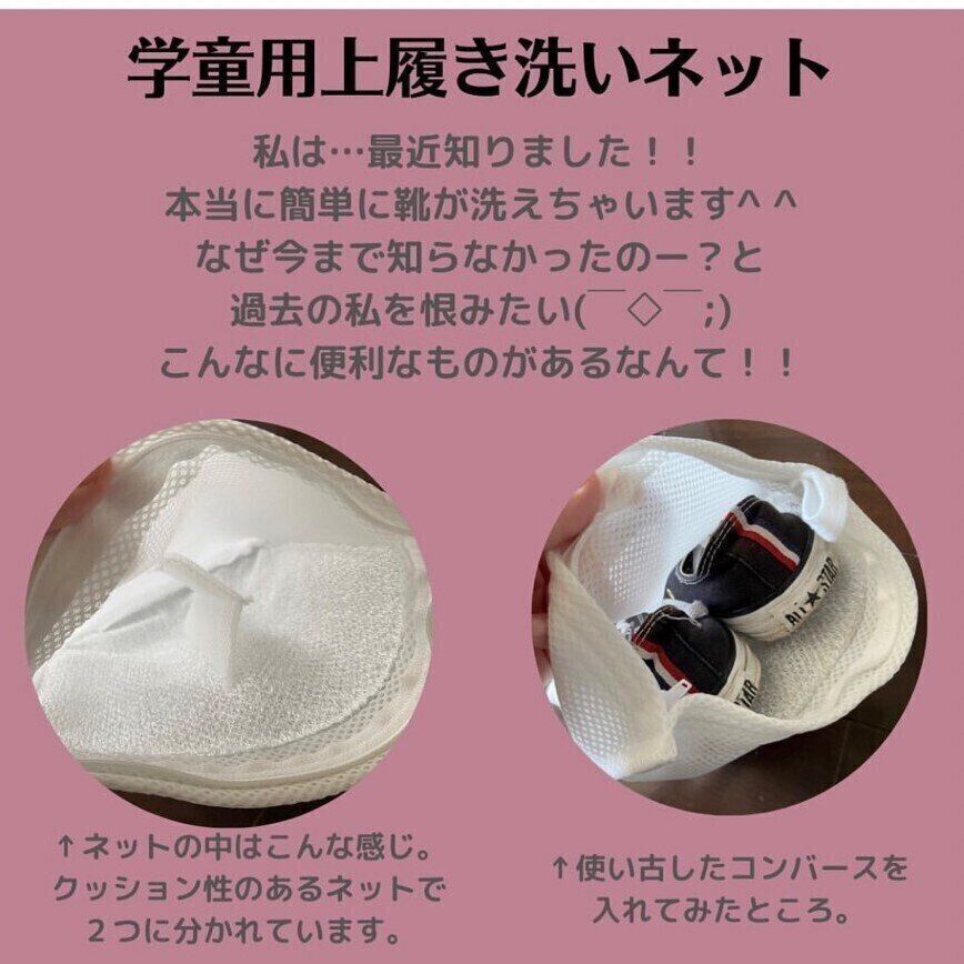 手でゴシゴシと洗う手間が省けるだけでなく、洗濯機で脱水までできるので、そのあと靴の乾きが早いのもメリットに!ただし、ひどい汚れのときは、事前にブラシでこするなどの予洗いは必要です。また、基本的には上履き洗い用のネットですので、そのほかの靴を洗う際はご注意くださいね。