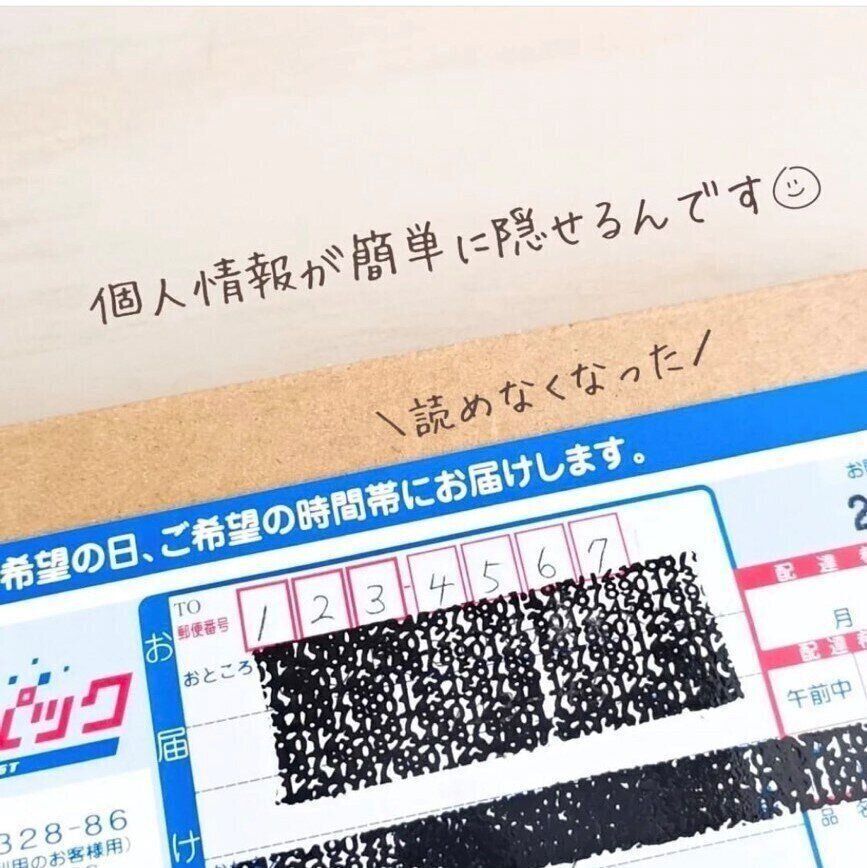 隠したい部分にスタンプするだけでご覧のとおり!何が書かれていたのかまったくわかりません。こんなに手軽に個人情報を隠すことができたら、ごみの処分もとても楽になりますね。たった110円で個人情報を守ることができる、コスパのよすぎるアイテムです。