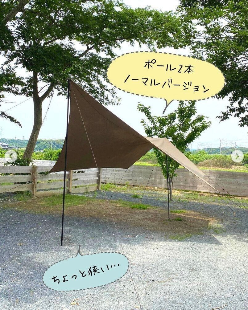 五角形でムササビのような形をしたペンタゴンタープ。ソロキャンプや少人数でのキャンプにちょうどいいサイズで、開放的な日陰を作ってくれます。