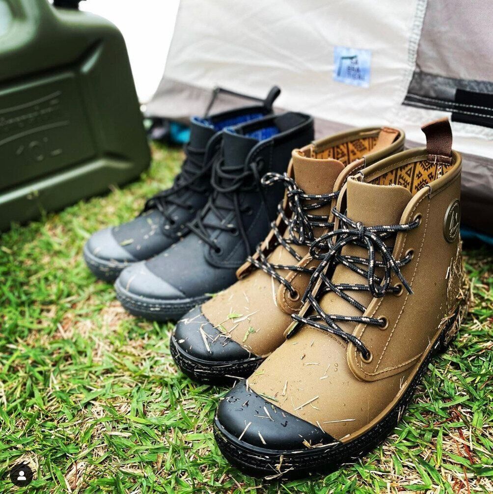「どんな靴で行こう?」と迷ったらワークマンをのぞいて見てください。ワークマンの「防水サファリブーツ」は合成ゴム製で接地面から約7cmの防水性があり、雨や水溜りも大丈夫!合わせやすい色とデザインで、キャンプだけでなく普段から使えそうですね。持っていて損はないアイテムです!