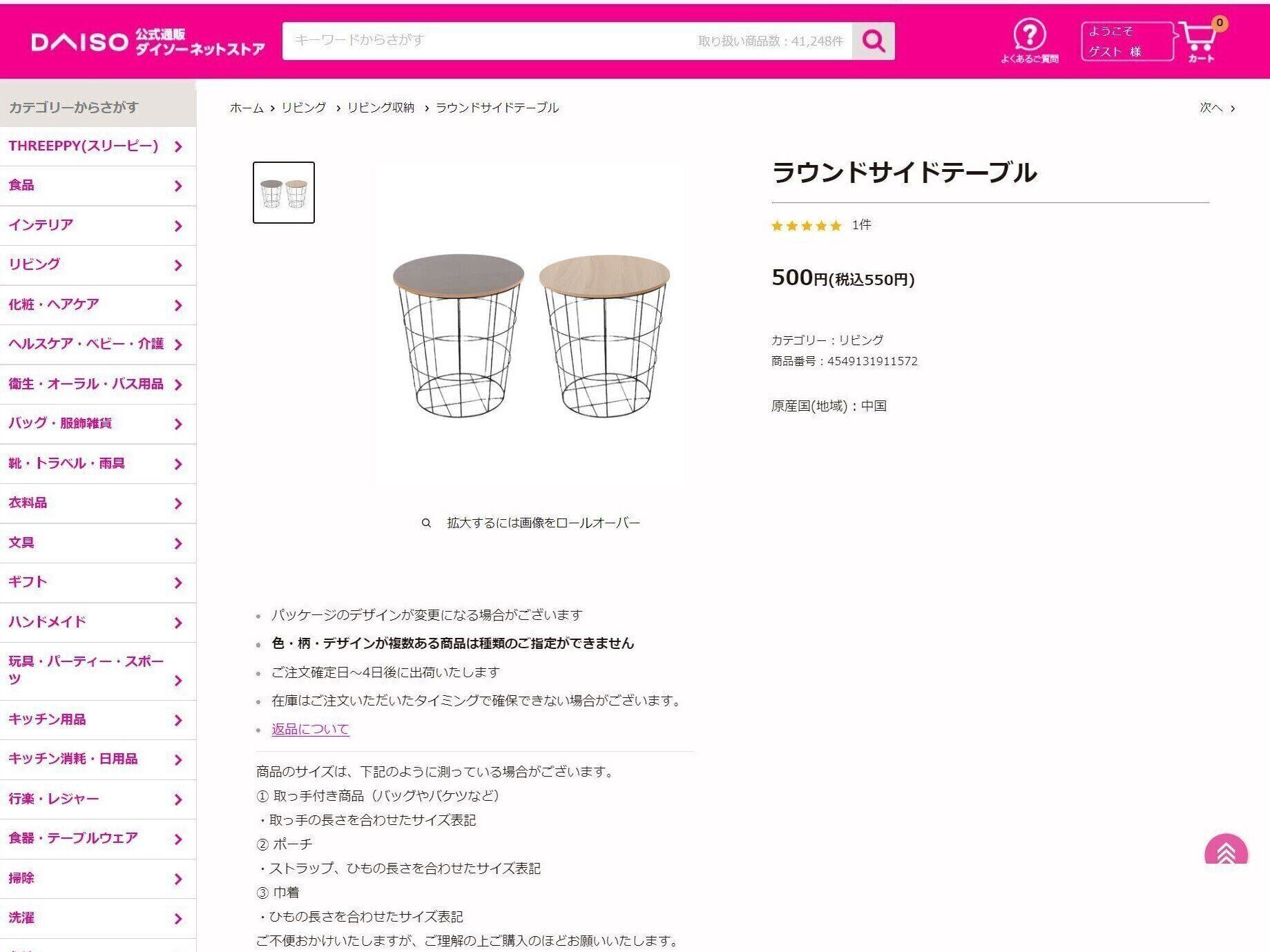 諦めようと思ったのですが、スマホでダイソーネットストアの在庫を調べると在庫ありになっていたので、即カートにイン。そのあとも店舗でいろいろな商品を見ながら「欲しいけど、持って帰るには大きいな」と思う商品をカートに入れて、お店を出る時に購入ボタンを押しました。