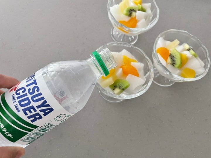 シロップとサイダーの相性が良く、甘くて爽やかな一品でした。ただ盛り付けるだけなので、数分でできてしまう時短デザートです。