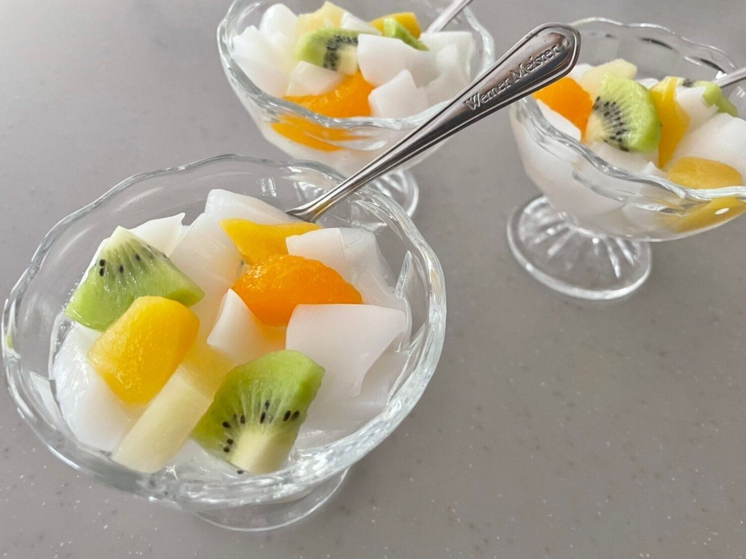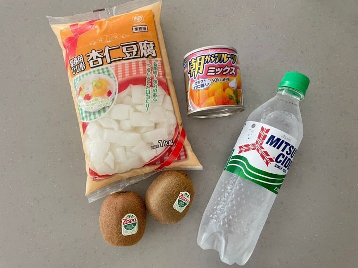 レシピにある「しゅわしゅわ杏仁フルーツポンチ」を作ってみました。