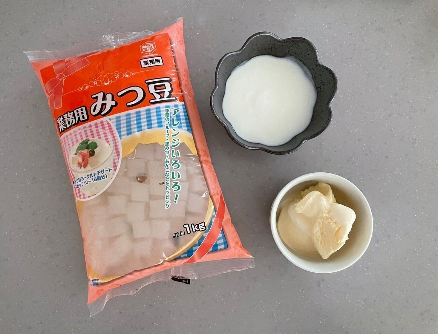 みつ豆がアイスの甘さにぴったりで、ヨーグルトのさっぱり感も美味しかったです。少し和風な食器と合わせて雰囲気も楽しみました。