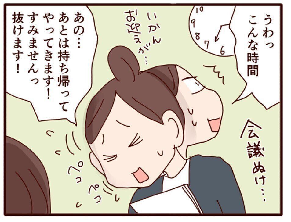 ワーママ時代、お迎え前のワンシーン。会議を途中で抜け、大慌てで保育園へ向かいますが……。