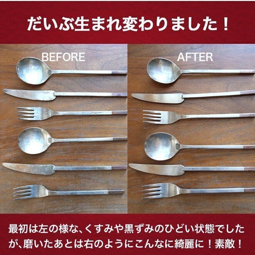 超微粒子の研磨剤とつや出しワックスが含まれたクロスなので、軽くみがくだけでまるで新品のようなきれいさに早変わり!お手軽にツヤを出すことが出来るので、カトラリーやアクセサリー、時計など、さまざまなアイテムをみがきたくなりますよ。