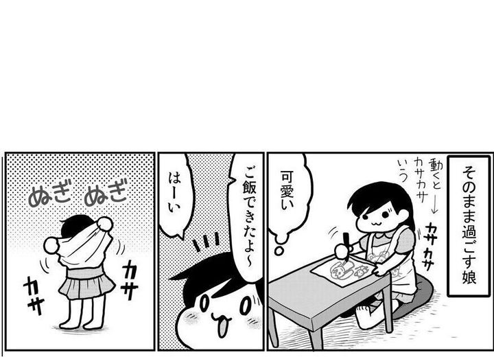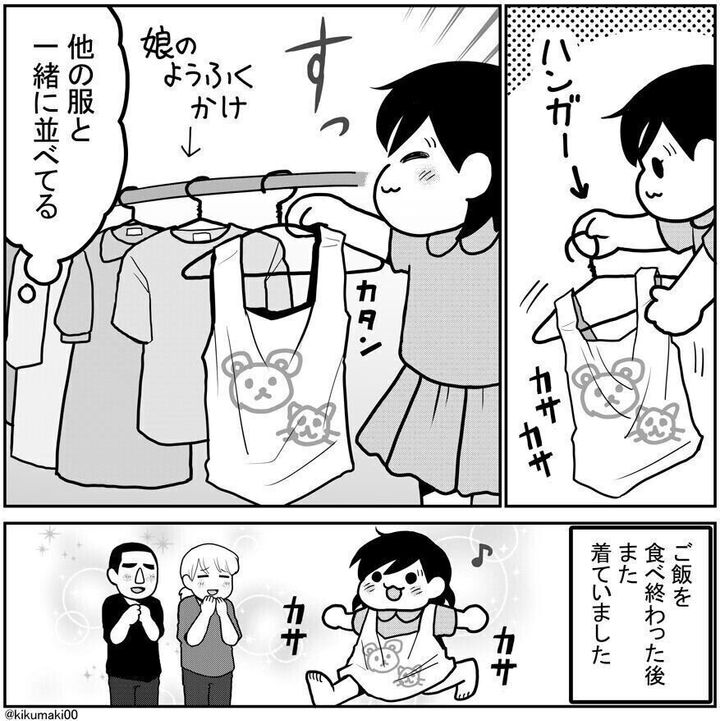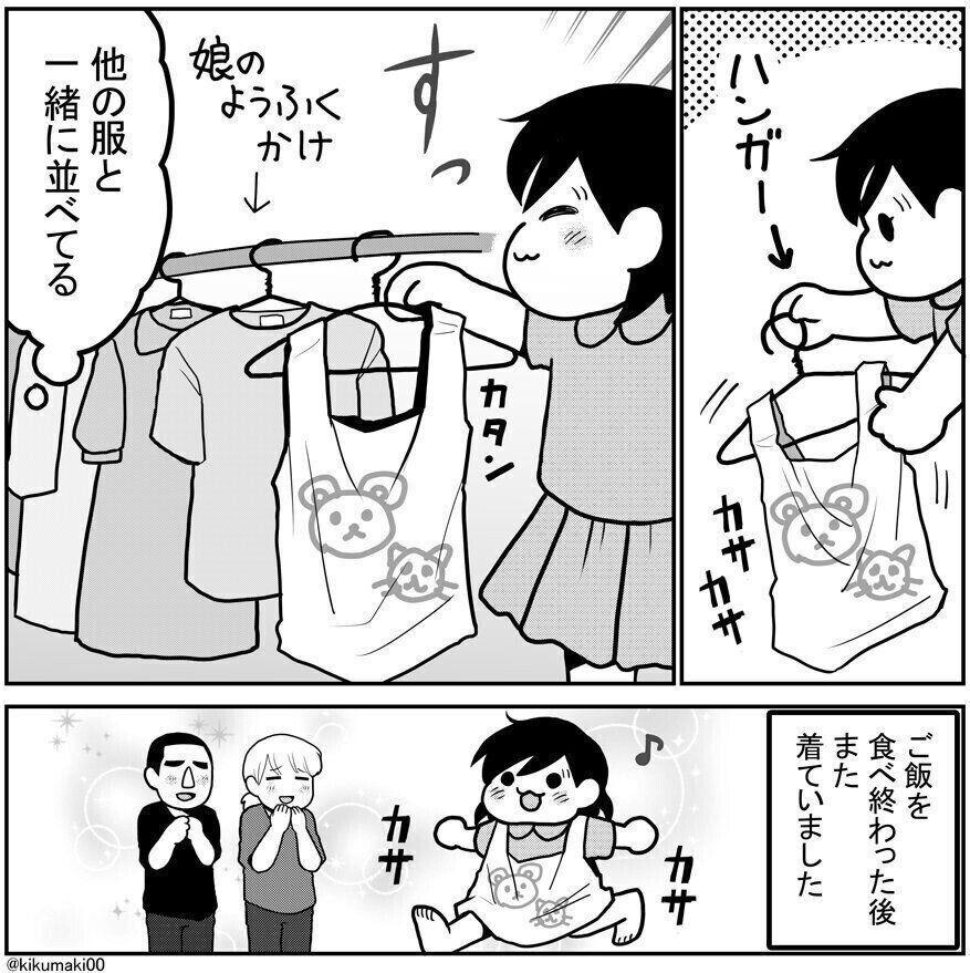 得意げにワンピースを見せる娘さんのかわいらしさに、きくまきさんもほっこりしたようです。