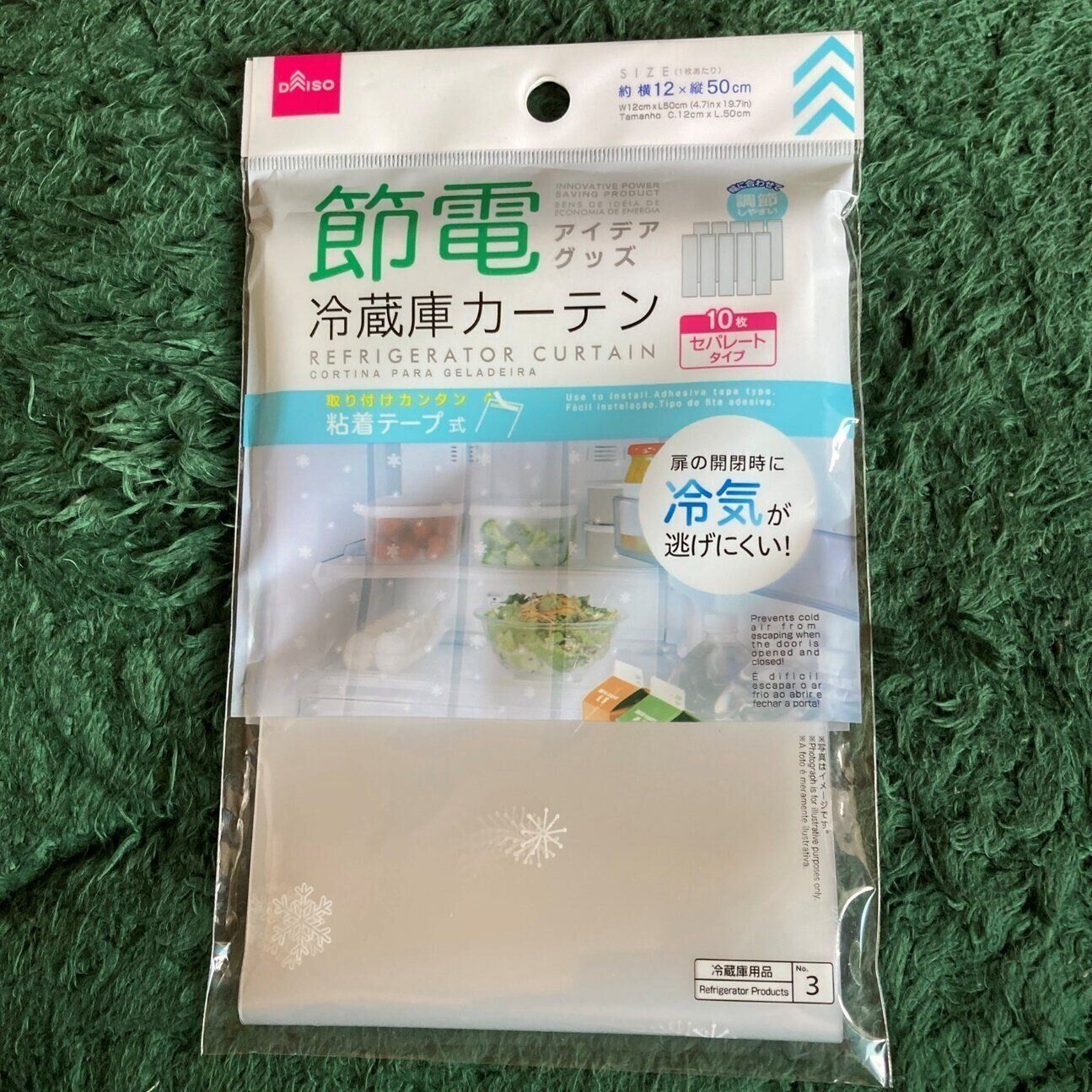 ダイソーの「節電 冷蔵庫カーテン」は、シールがついたビニールが10枚入りで110円です。