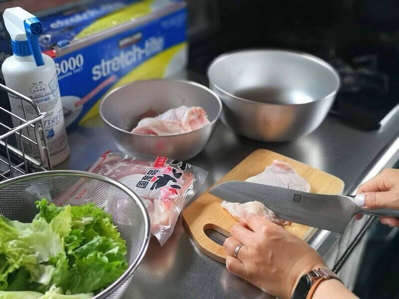 その他、むね肉・もも肉・ササミなどは、厚みが揃うように観音開きにすることで均一に熱が通るようになるので、焼きムラを防げます。
