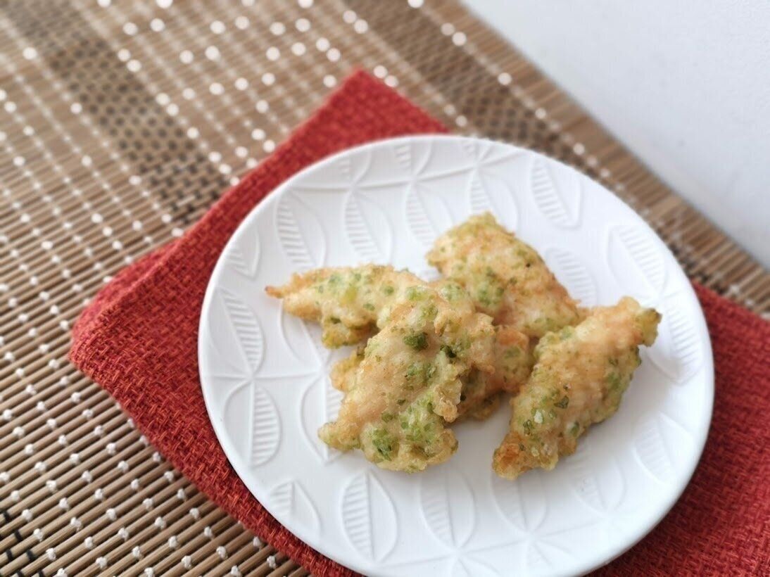 おすすめのレシピは、ササミの磯辺揚げです。醤油と生姜で下味をつけ、それに青のりをまぜた天ぷら衣をつけて揚げます。