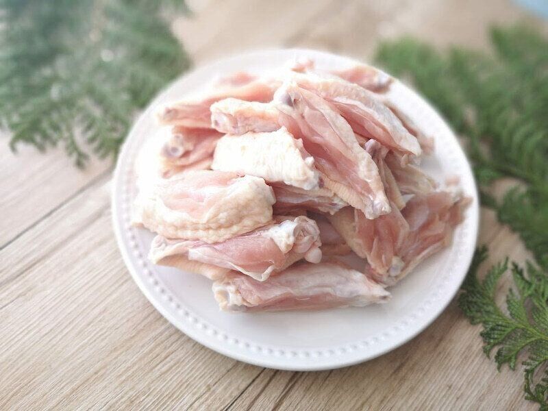 手羽中とは、手羽先の関節から先の部分を取り除いた部位のお肉で、こちらの商品は、手羽中をさらに縦半分に切った「手羽中ハーフ」というタイプです。