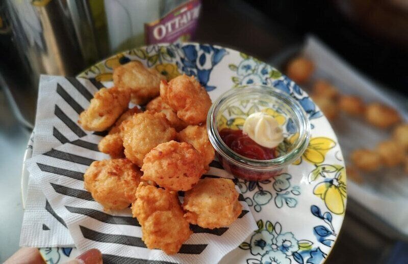 フードプロセッサーで卵と小麦粉と一緒に回せば、あっという間にナゲット生地に。少しあら目のほうが食べた時の食感がよいのでオススメですよ!揚げたてアツアツはサクっ!ふわっとして、最高!いくらでも食べられてしまうのでご注意を。