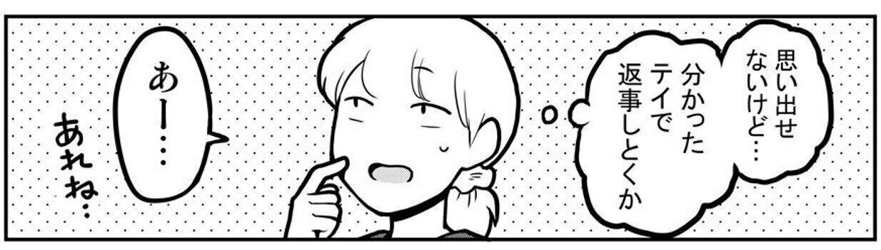 「あったっけ…?」と思い出せないきくまきさんは、わかったふりをしようと「あー…」とつぶやきます。