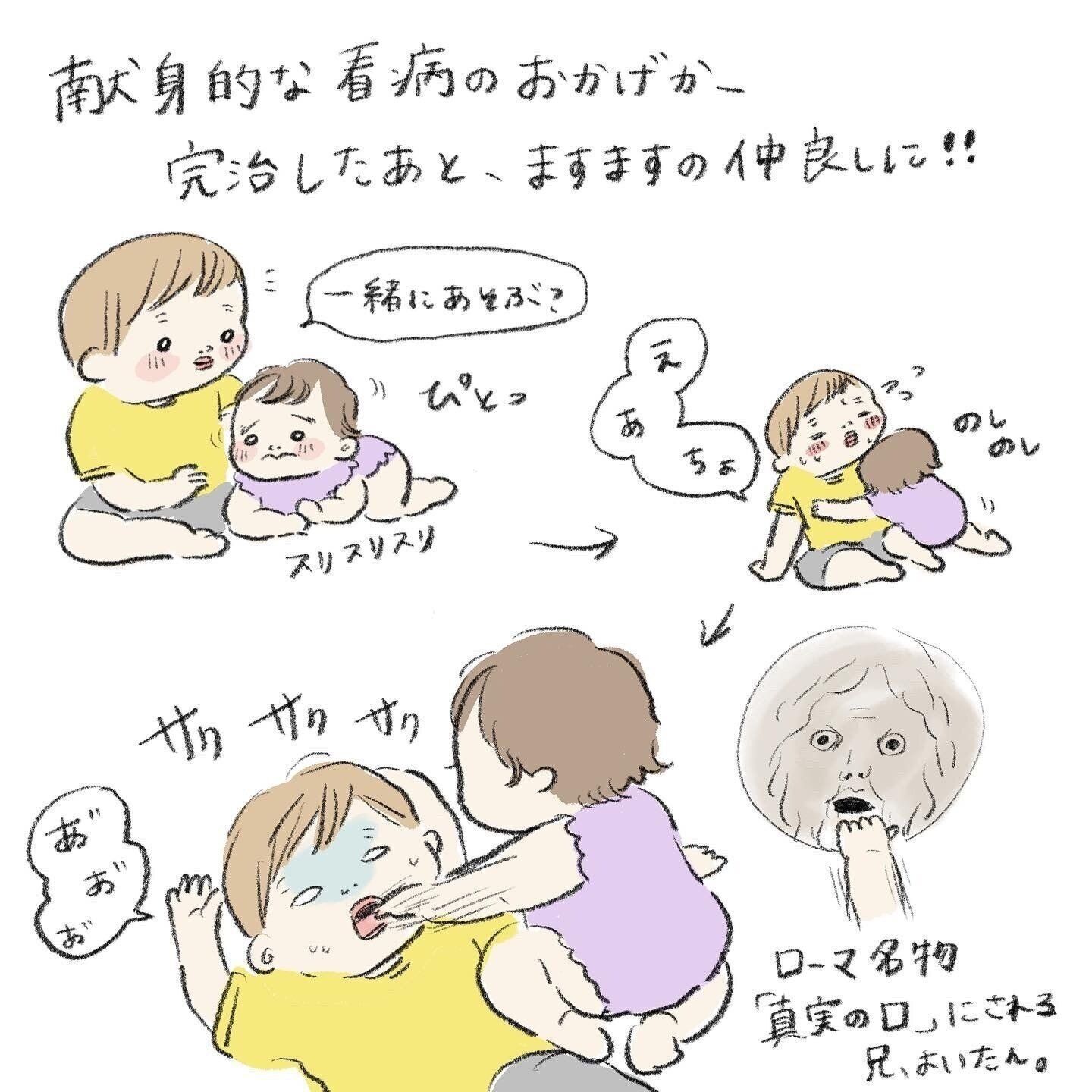 まぼさん(@yoitan_diary)がTwitterに投稿した漫画が大きな反響を呼びました。当時10か月だった娘さんの一大事にママは意気消沈。そんなママのピンチを救ったお兄ちゃんの活躍にはじーんときます!まぼさんにお話をうかがいました。