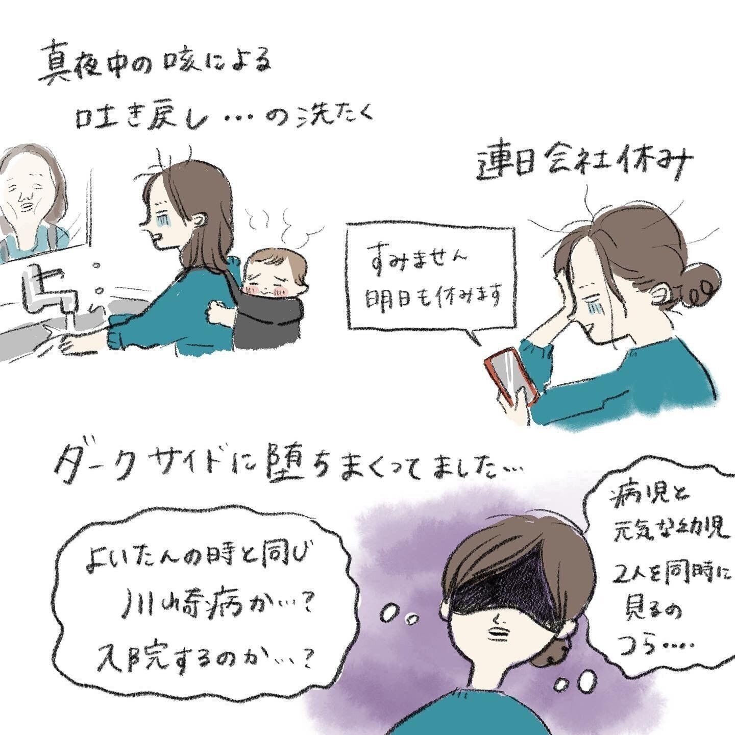 当時10か月だったしおさんが体調を崩してしまい、まぼさんは連日の欠勤を余儀なくされます。
