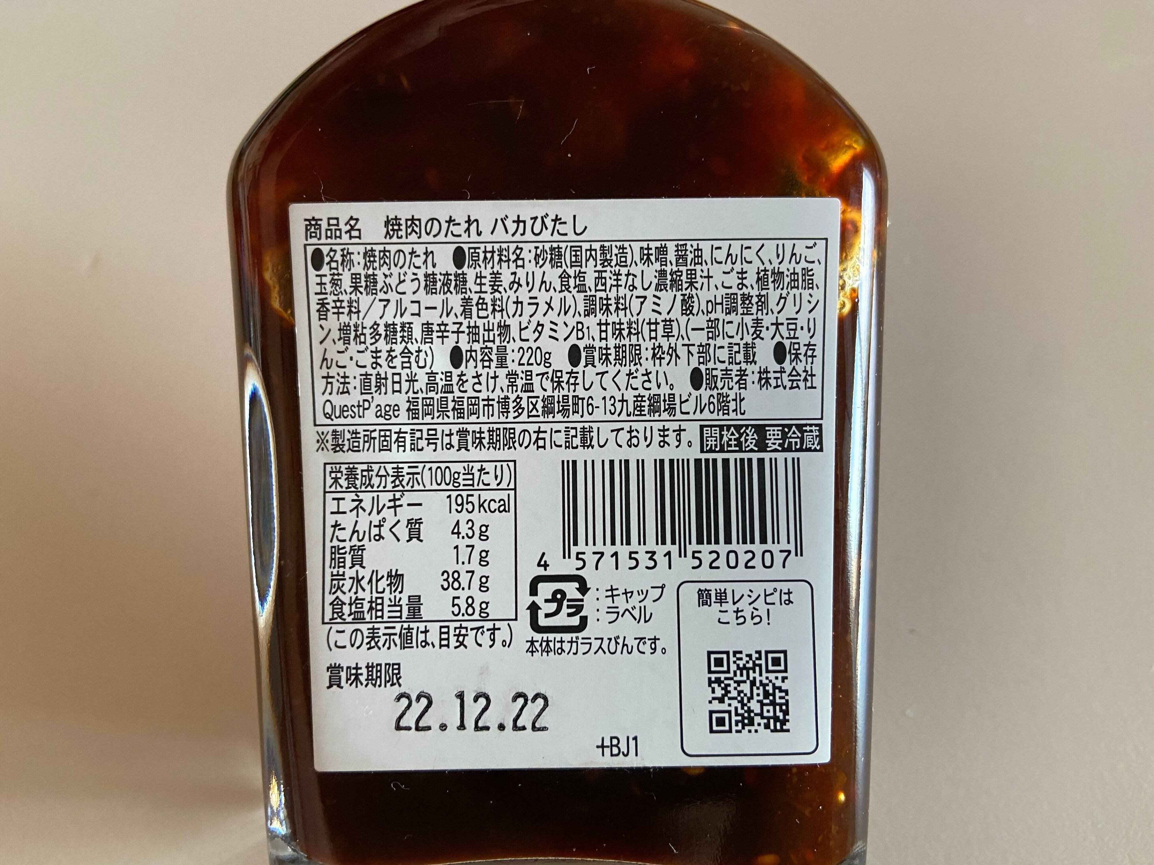 カルディの調味料コーナーで発見したインパクトのある商品名の焼肉のたれ、「バカびたし」(購入時:840円)を購入してきました。7月に発売開始されたばかりの新商品です。