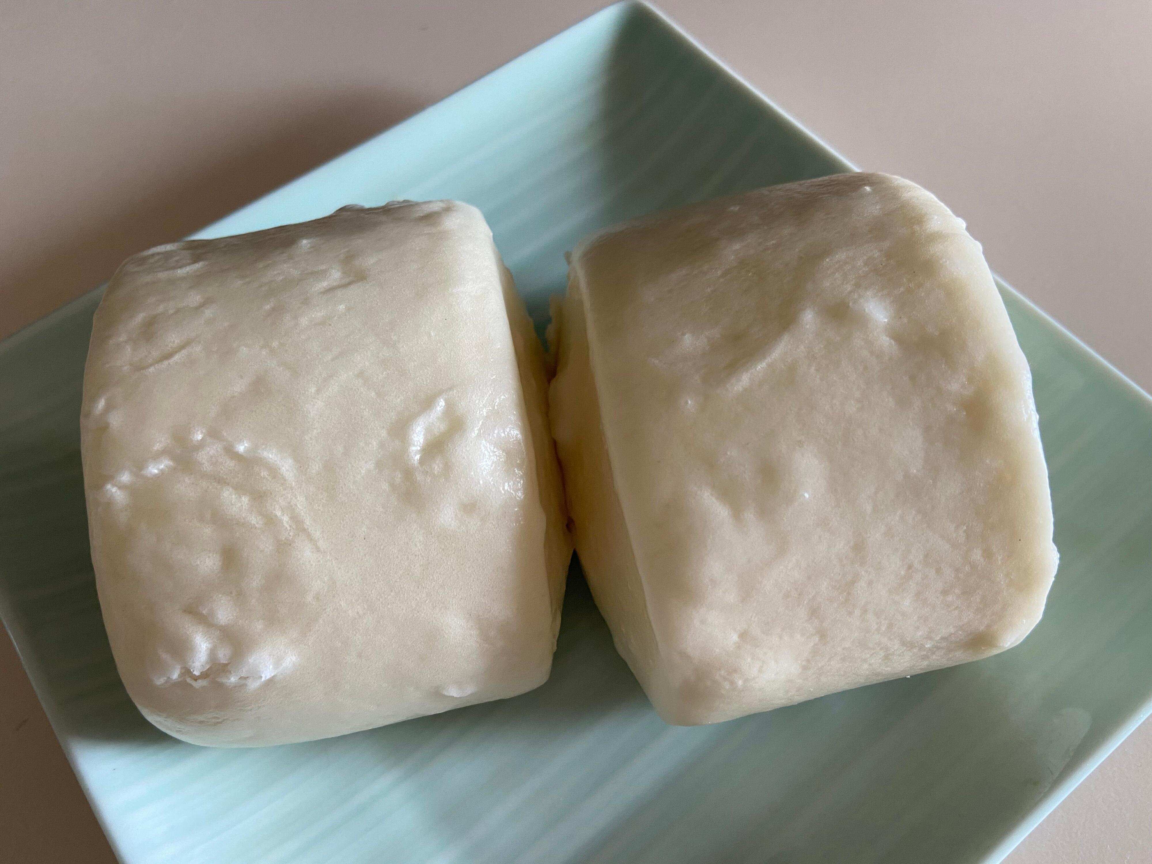 加熱後の饅頭は、表面はぺたっとつるっとした手触り。ほんのり甘い香りがします。