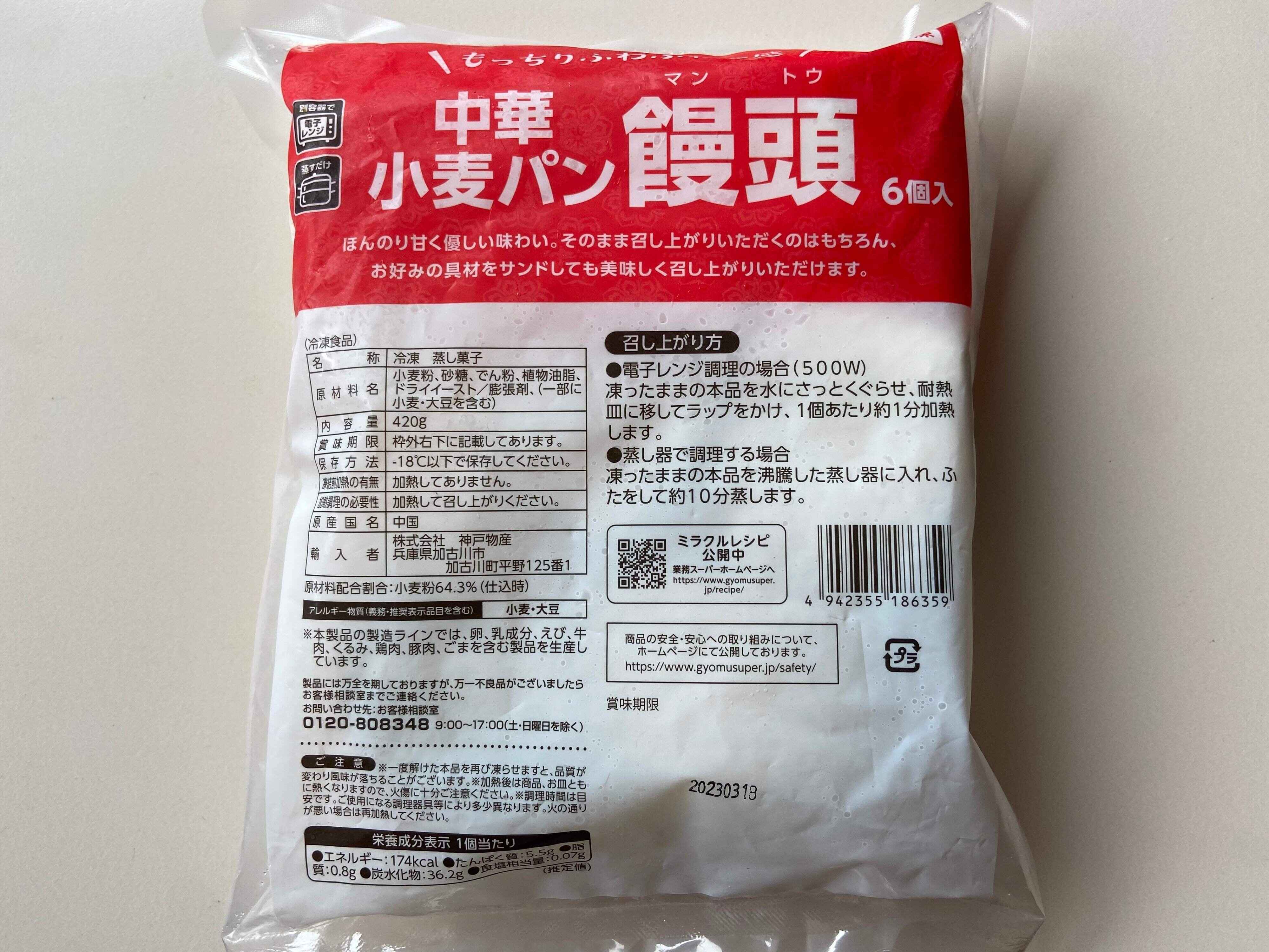 業務スーパーの冷凍コーナーで発見した新商品「中華小麦パン饅頭」(322円)。饅頭と書いて「マントウ」と呼ぶ、中華点心のひとつです。