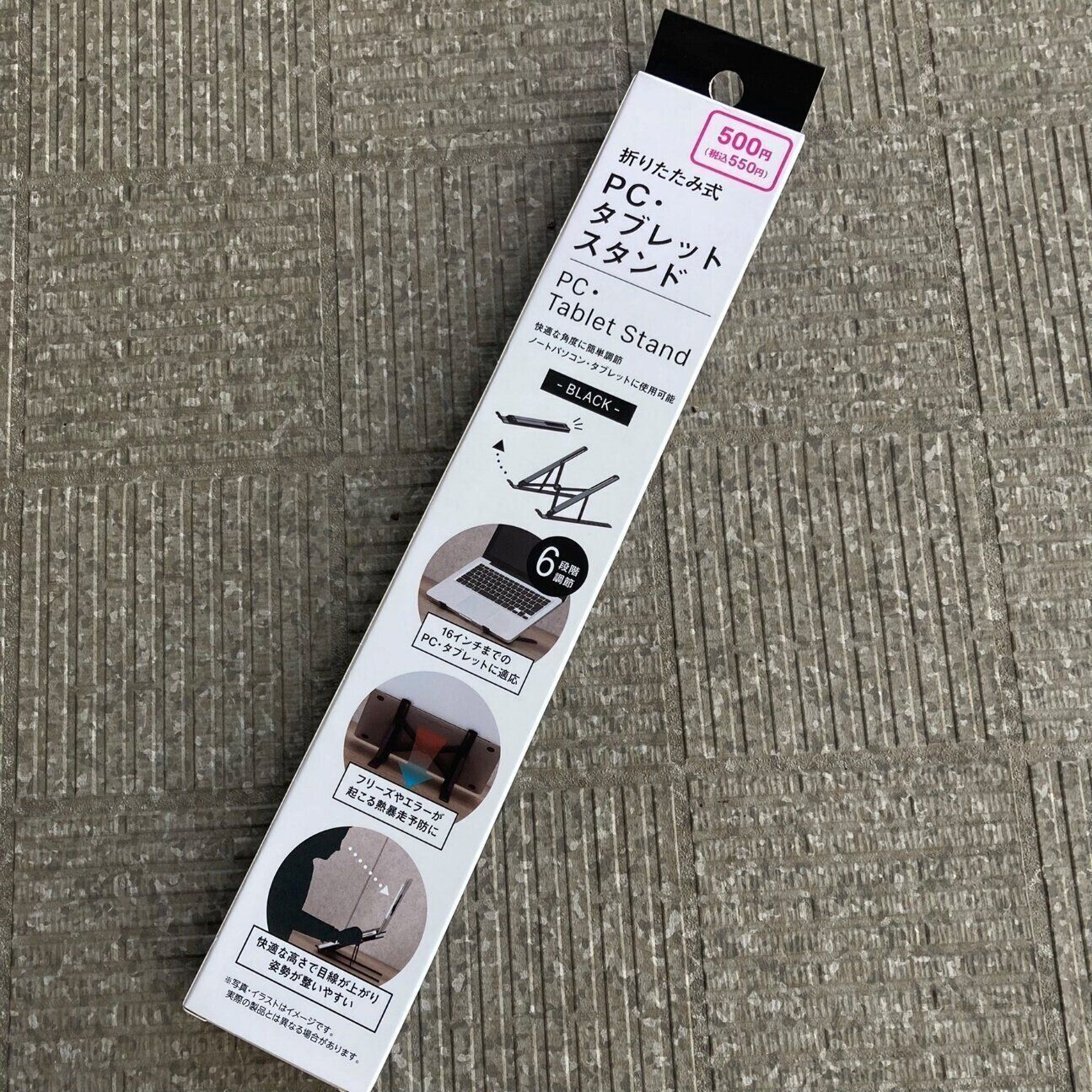 ダイソーの「PC・タブレットスタンド」の価格は550円。パソコンなどのスタンドとしてはかなりお手頃な価格設定です。