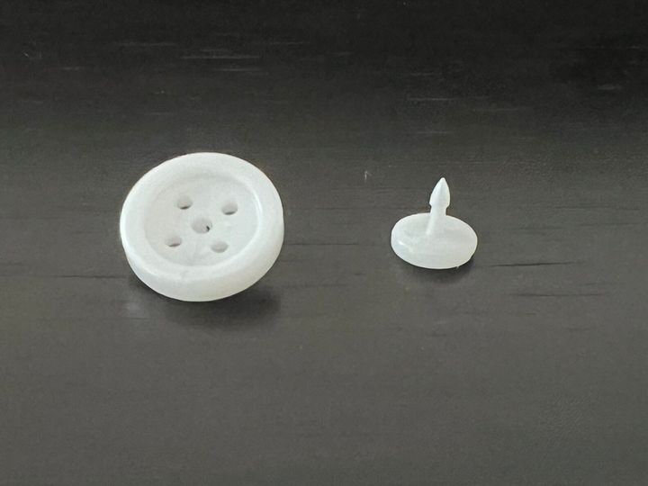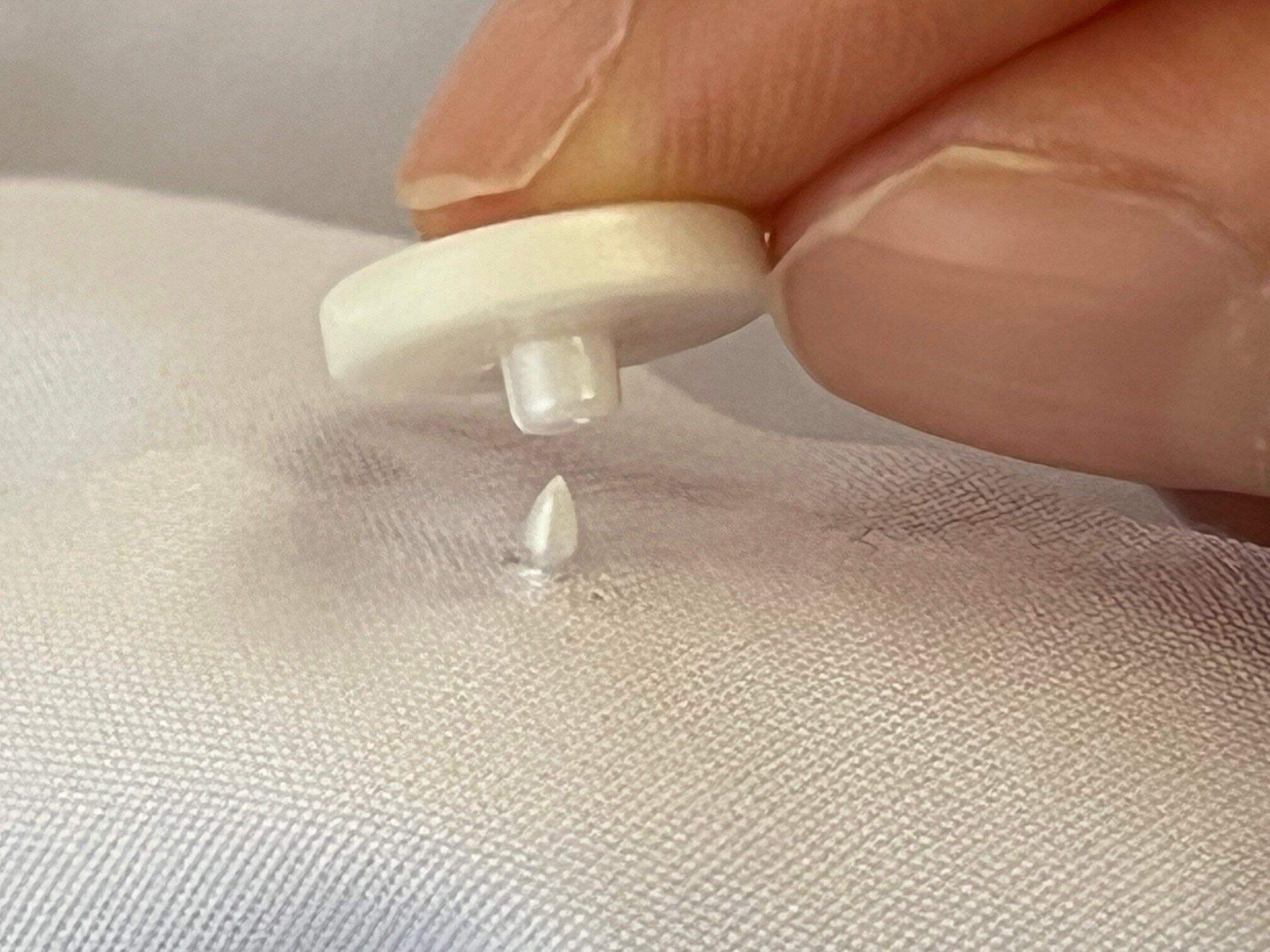 ものの10秒くらいでボタンが取り付けられました。学校で制服のボタンが外れてしまっても、これなら子どもでも自分で取り付けられますね。
