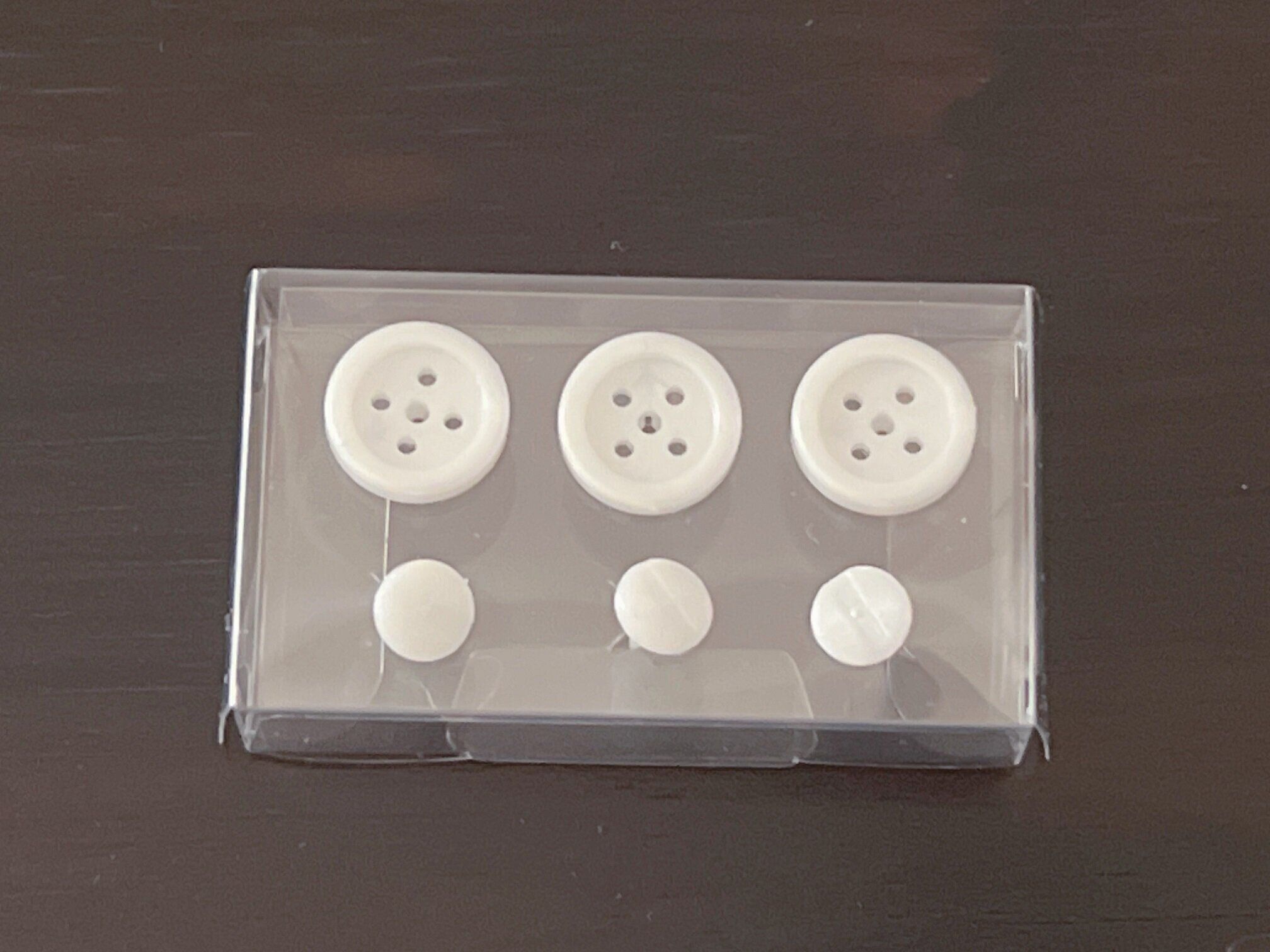 今回ご紹介する「ワンタッチシャツボタン」は、サイズ11mmのボタンが3セットで価格110円となっています。