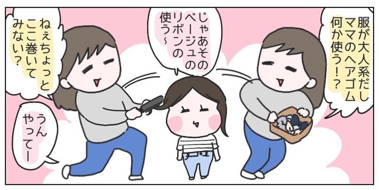 髪の毛を巻いてへアレンジしてあげるママの姿も印象的でした!imo-nakさんはふだんから娘ちゃんたちのおしゃれに気をつかっているのでしょうか?