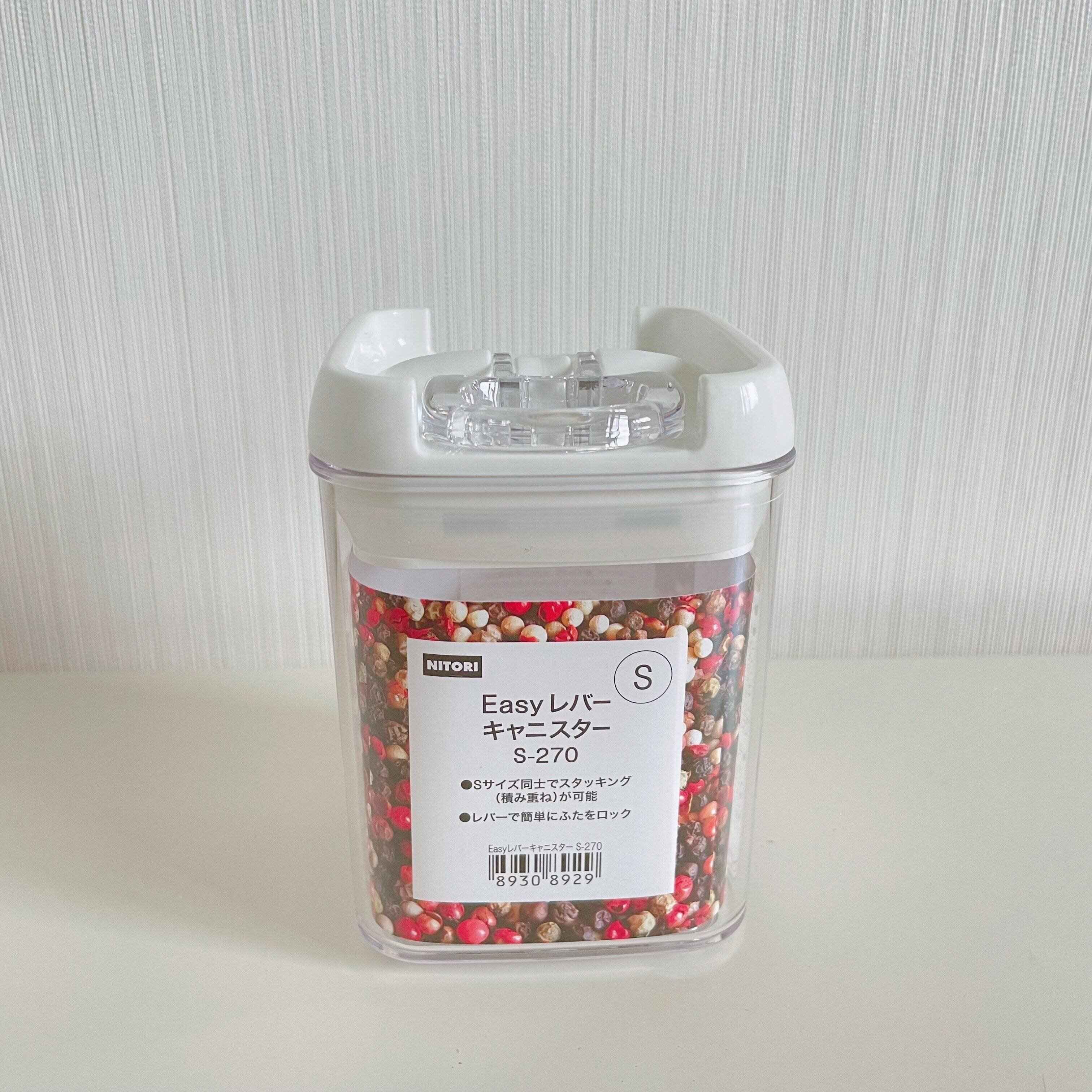 以前は100均の瓶で保存していましたが、今回の砂糖と塩収納においては、ニトリのEasyレバーキャニスターが優秀でした。「収納場所」や「塩が固まる問題」も解決してくれ、プチストレスが改善されること間違いなしです。ぜひ店頭でチェックしてみてくださいね。