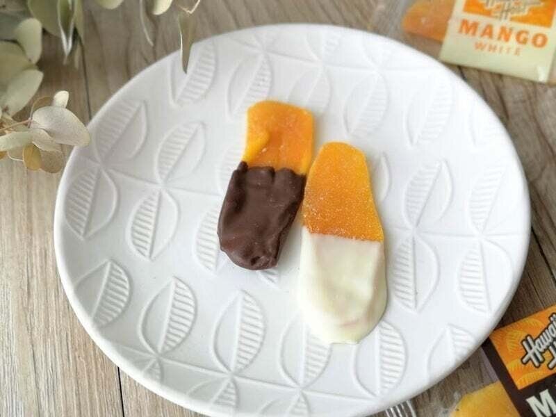ダークチョコレートカバードマンゴーが終売してしまった今、まさに待ちに待った商品だったとともに、なんとこちらの商品は、チョコレートとホワイトチョコレート2種類のチョコレートが楽しめる仕様で、まさに天にも登る気持ちでニンマリしてしまった商品です。