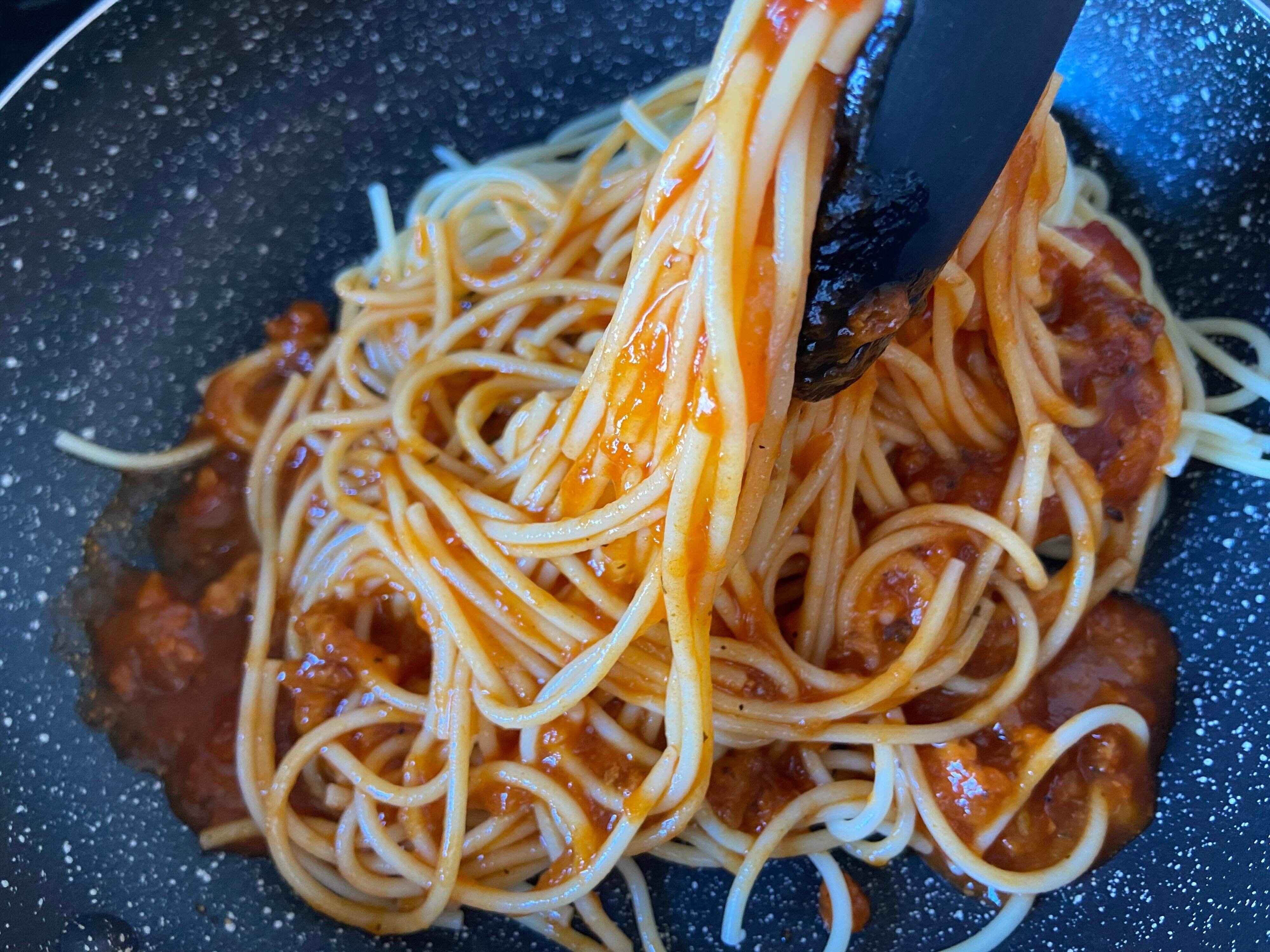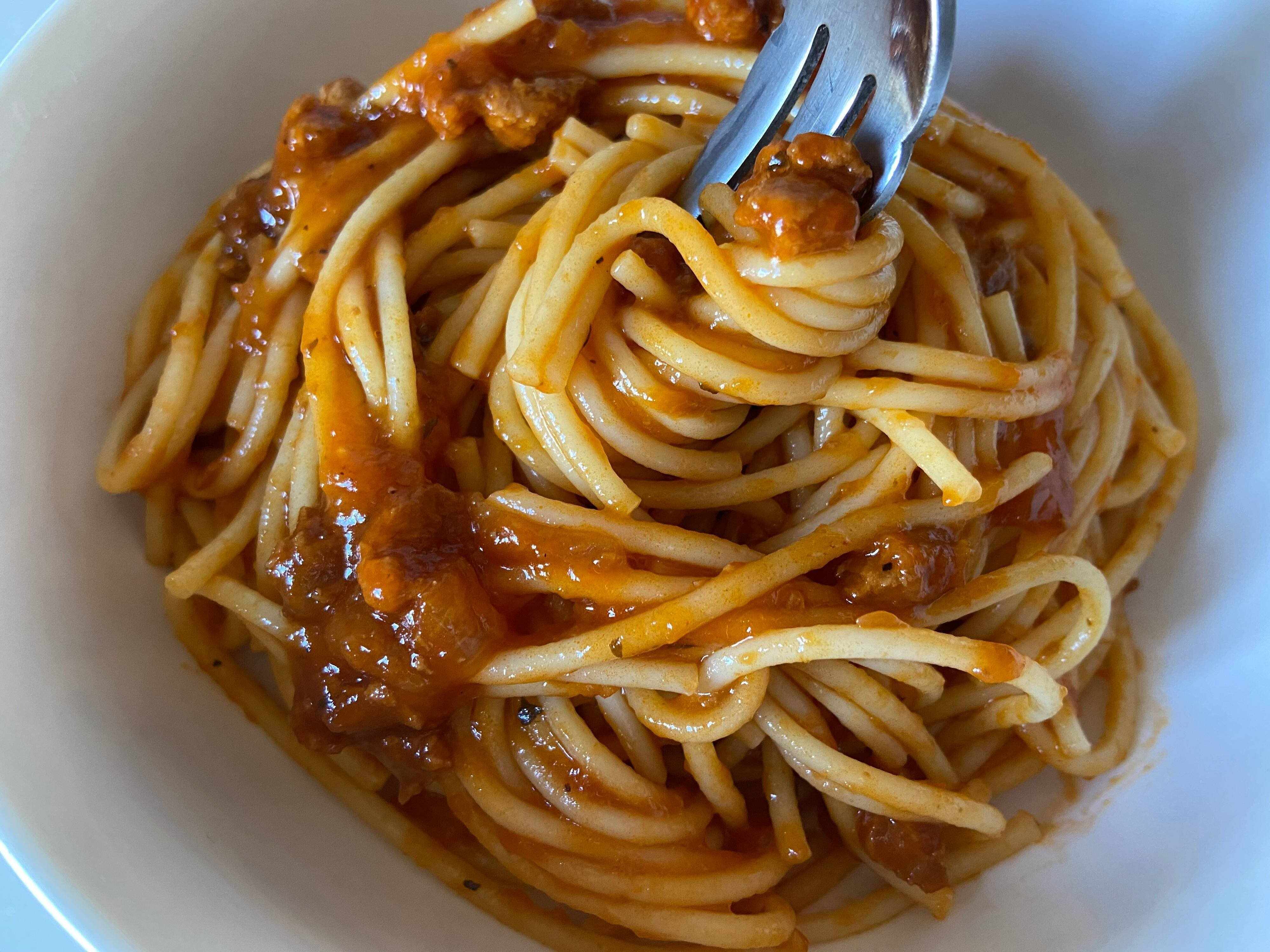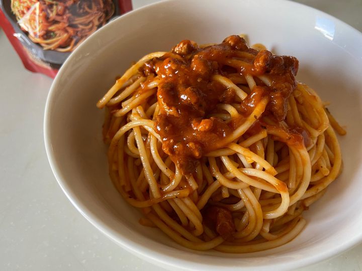 玉葱・人参・セロリ・にんにくなどの香味野菜がたっぷり入ったトマトソースは旨みがたっぷり溶け込んだ味わい深いソース。ミートソースのようにひき肉(のような大豆ミート)と刻み野菜の食感が感じられるため、食べ応えもあります。
