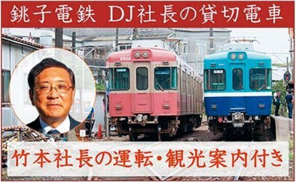 銚子市のふるさと納税返礼品。社長自らが運転士とDJ(ディスクジョッキー)をつとめ、ギャグをたっぷり盛り込んだ沿線観光案内とともに銚子―外川間を1往復する。「DJ」は「ドン引きする冗談」の略でもある。