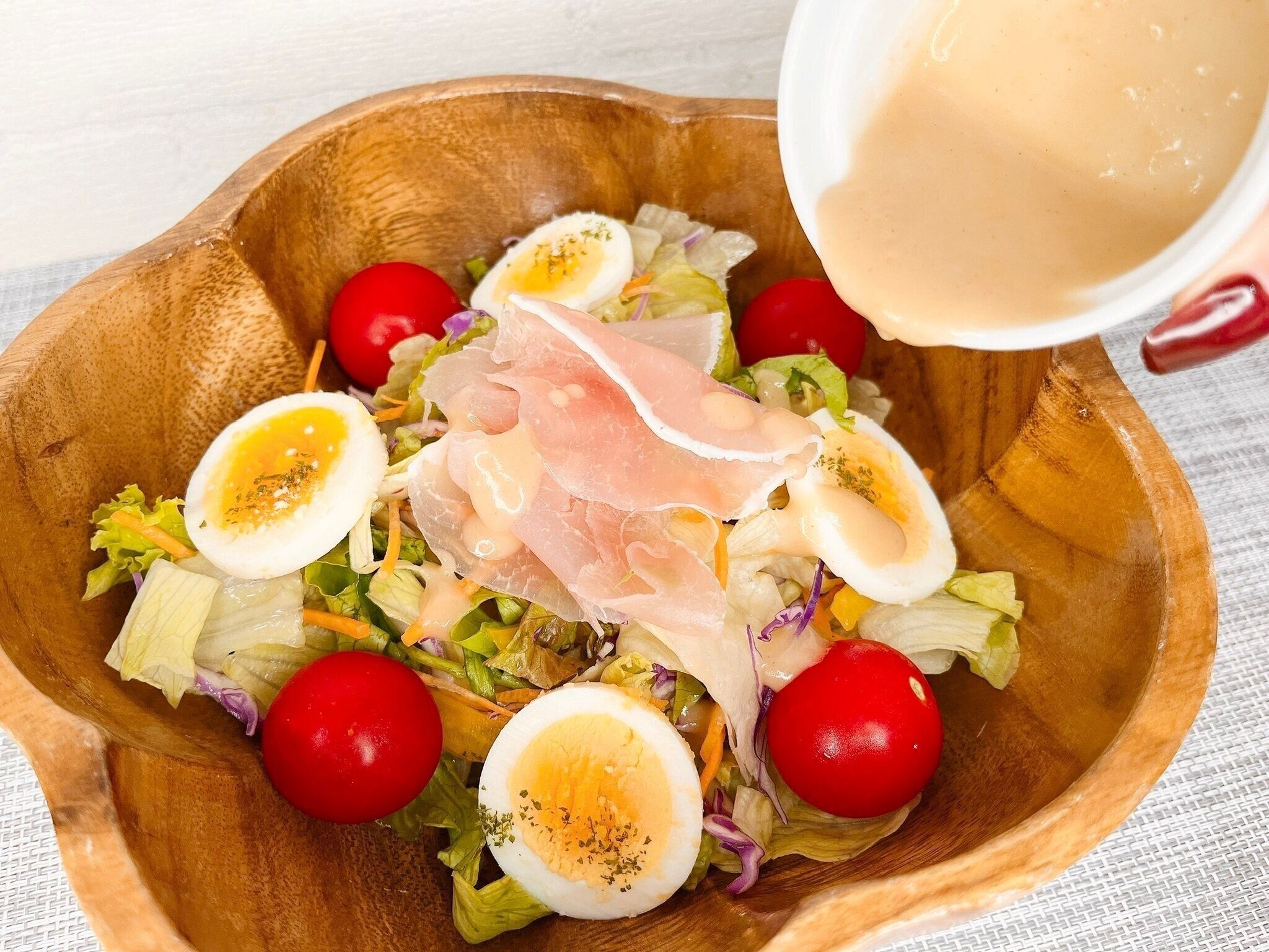 とろみが強いドレッシングなのでサラダだけでなく、肉料理や魚料理のソースとして使用するのもおすすめですよ!