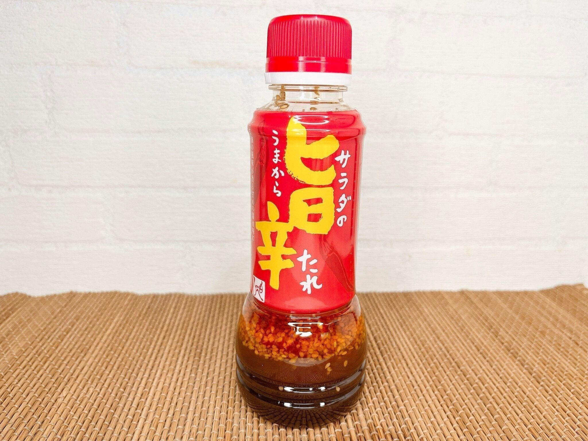 サラダの旨たれとベースは同じでごま風味の醤油ベースのドレッシングなのですが、それに加えてコチュジャン、豆板醤、唐辛子などの香辛料が効いた、ピリッと辛いドレッシングになっています。