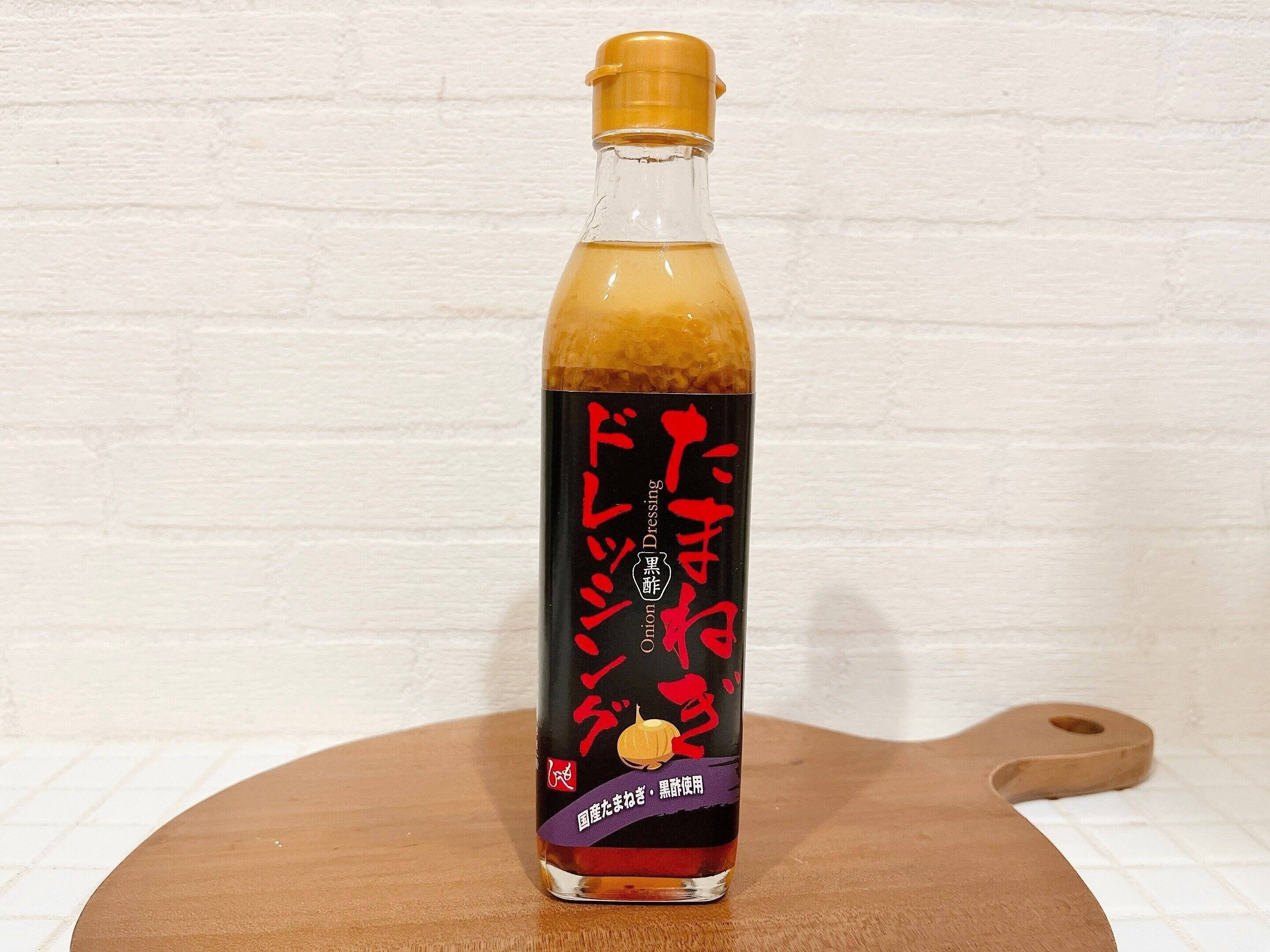 こちらもロングセラー商品のもへじ「黒酢たまねぎドレッシング」。