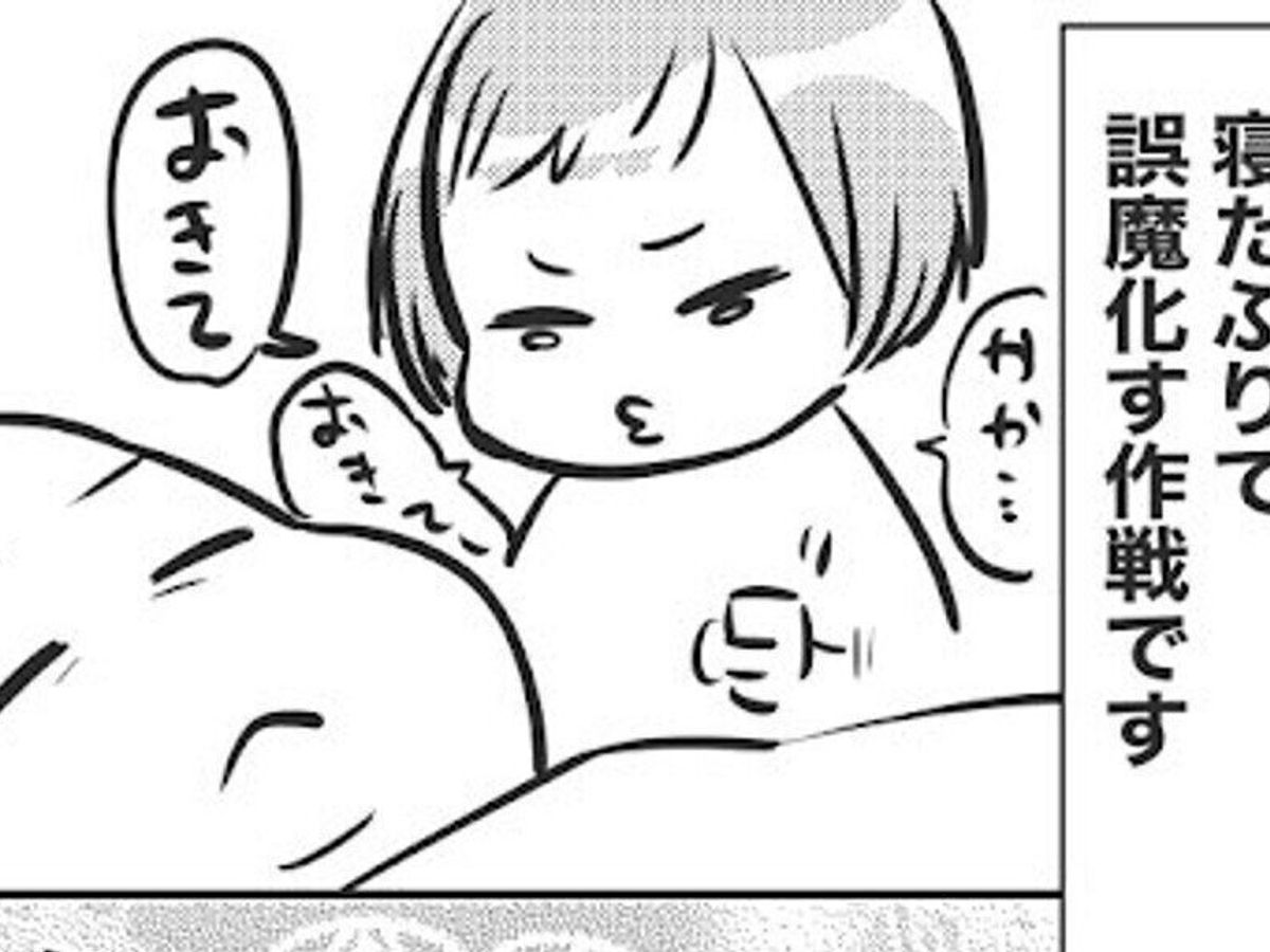 「制限時間を迎えると、ママは寝たふりをする」というスタイルをとっているいぬいさん。しかしこの日娘ちゃんは、寝たふりをするいぬいさんにスッと近づいてきます。