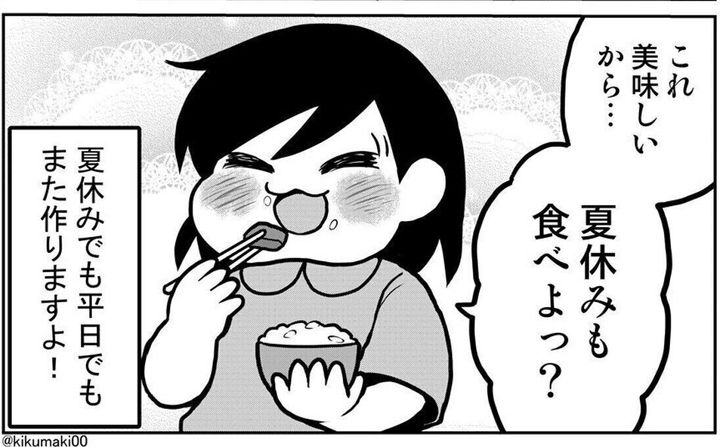 娘さんの様子からも、きくまきさんが普段から愛情たっぷりにごはんを作っていることが伝わってきますね。