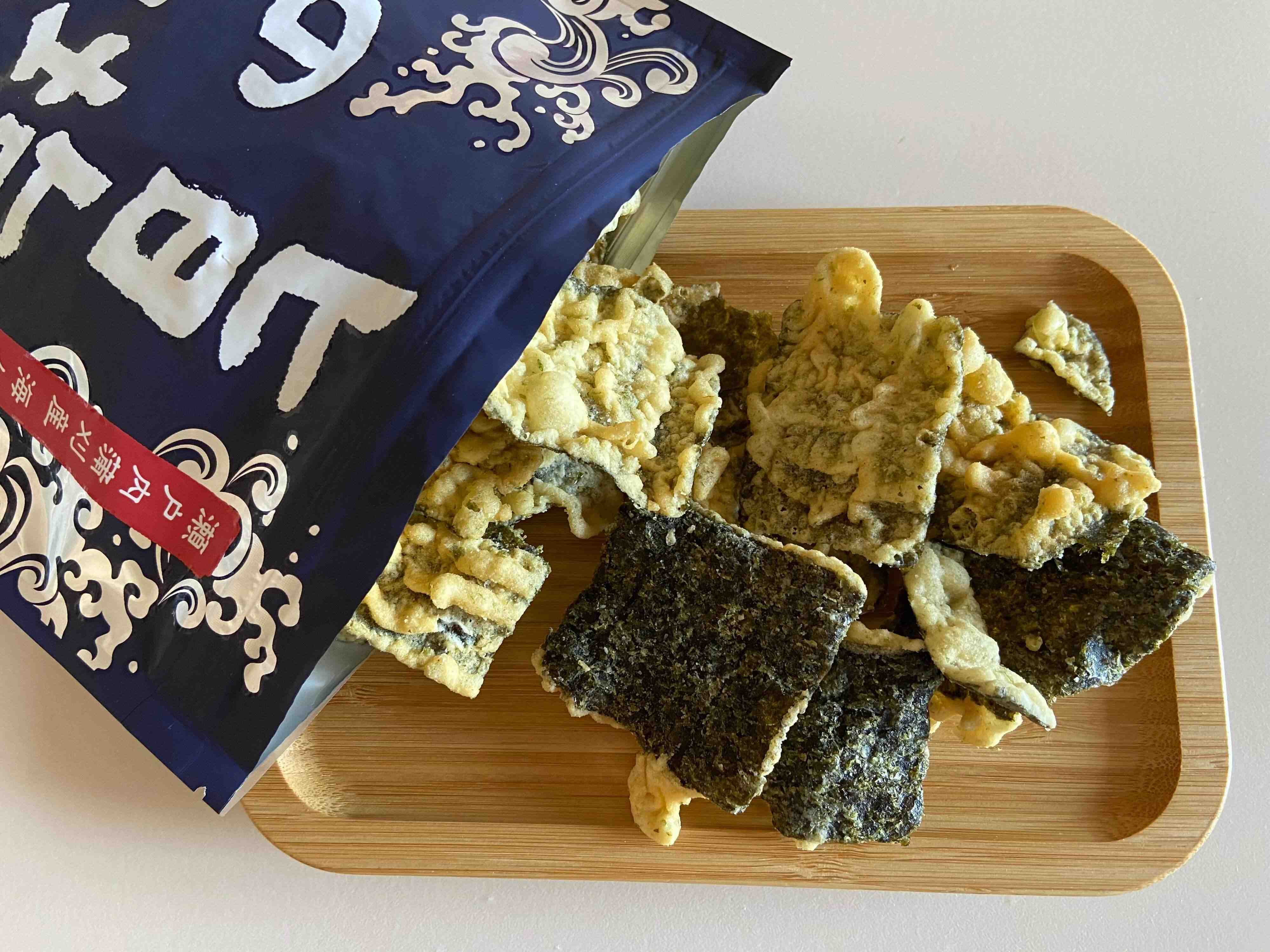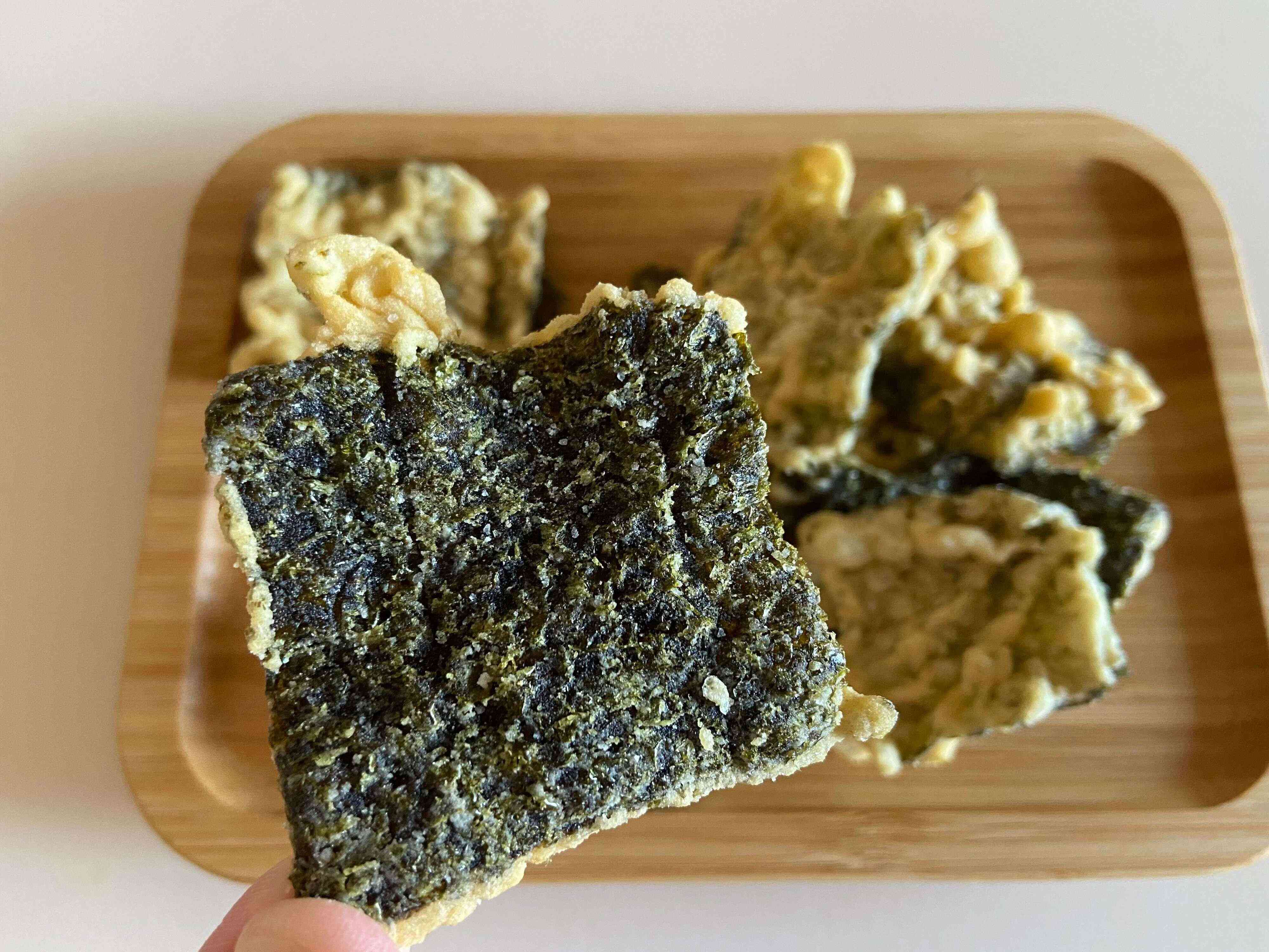 さっそく食べてみると、想像以上のおいしさ。しっかりめに効いた塩が、のりの風味とサクサクスナックの味を引き立てていて、とてもおいしい!