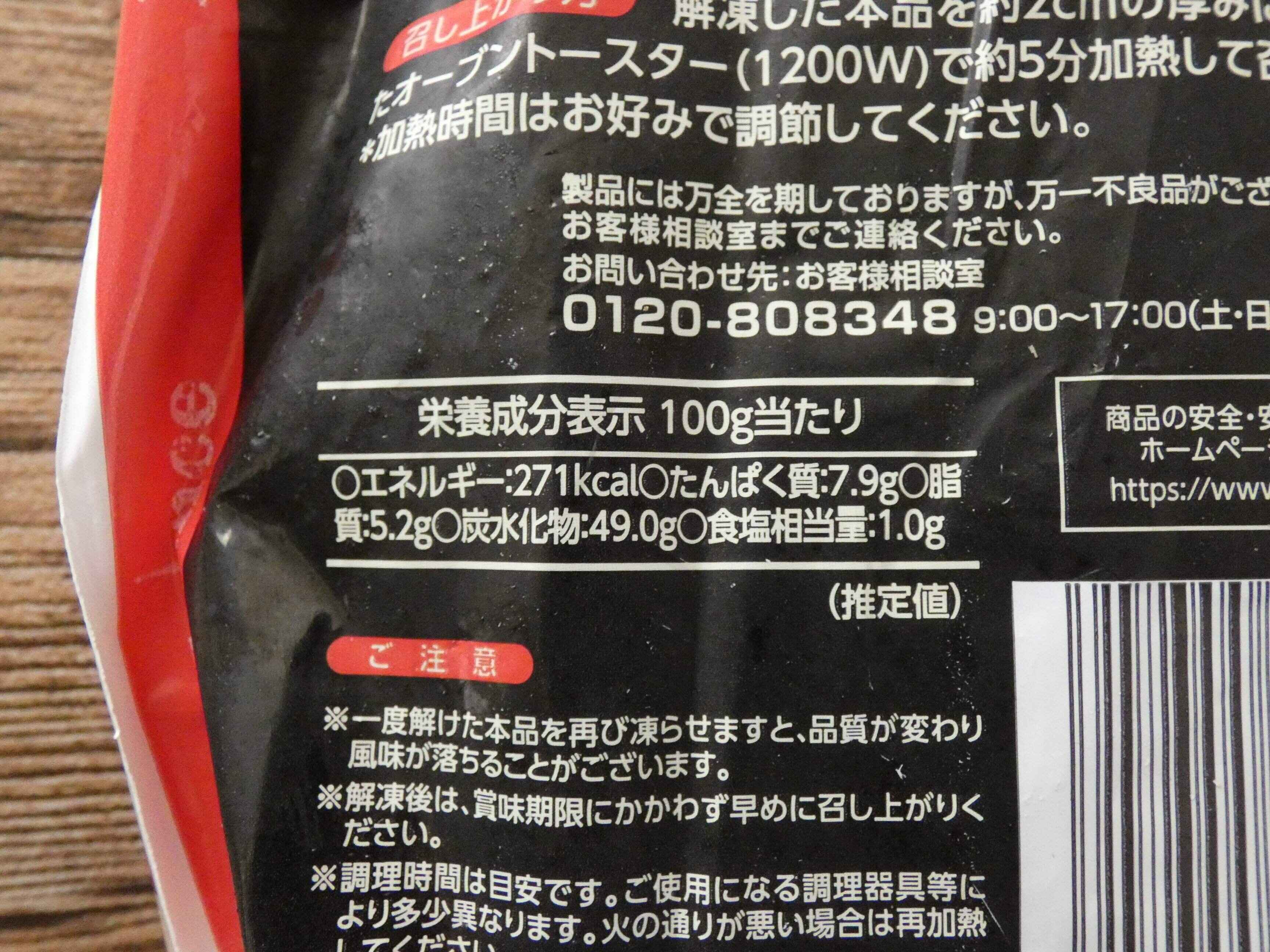 栄養成分表示を見ると、100g当たりのエネルギーは271kcal。