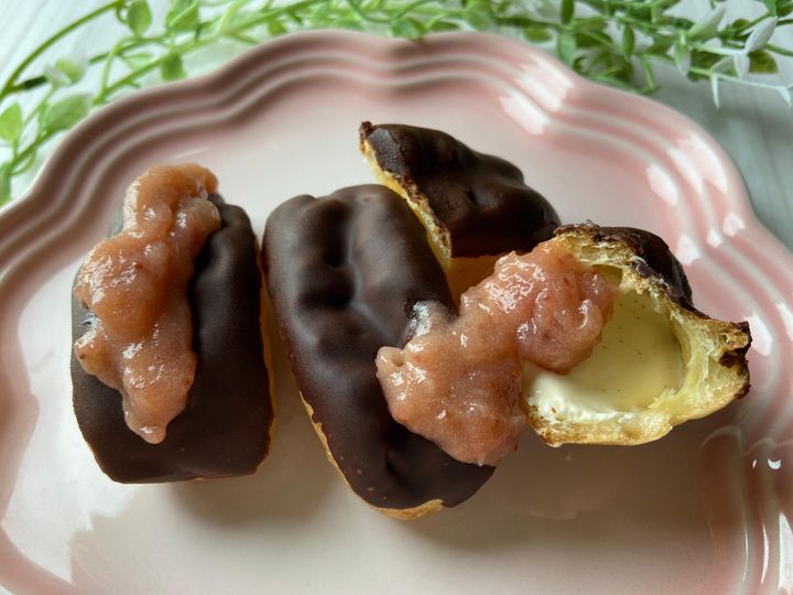 筆者はこの日はエクレアにかけてみました。コクのあるカスタードクリームとチョコレートのかかったシュー生地にあまおう苺バターをのせれば、ほどよい甘酸っぱさが加わったフルーティーなエクレアに。チョコとベリーの組み合わせは間違いないおいしさです!