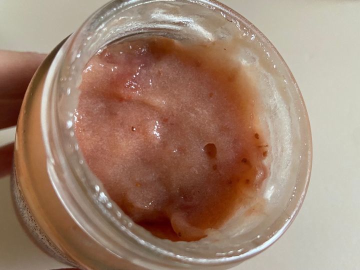 まず苺ジャムとは見た目の色が全然違います。バターが入ることでクリーミーなピンクカラーになっていて、苺の種のつぶつぶ感も見えて甘酸っぱい香りも広がりとってもおいしそう。