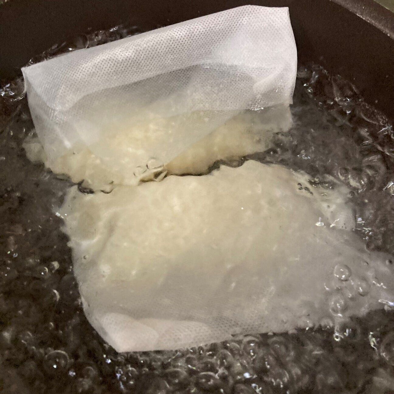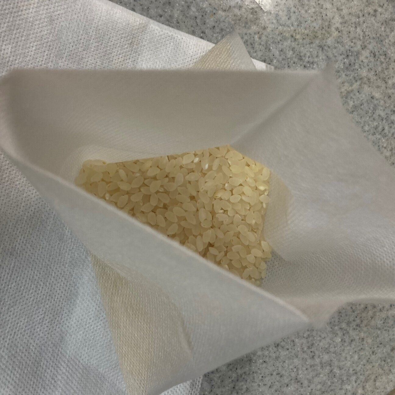 お米はふくらむので、入れすぎると袋からあふれて大変なことになっちゃいます(経験済み)。なので、よくばってお米を入れ過ぎないようにしてくださいね。