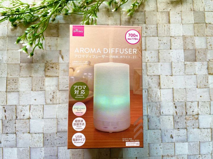 ご紹介するのは、ダイソーの「アロマディフューザー」です。超音波加湿方式で、価格は770円。