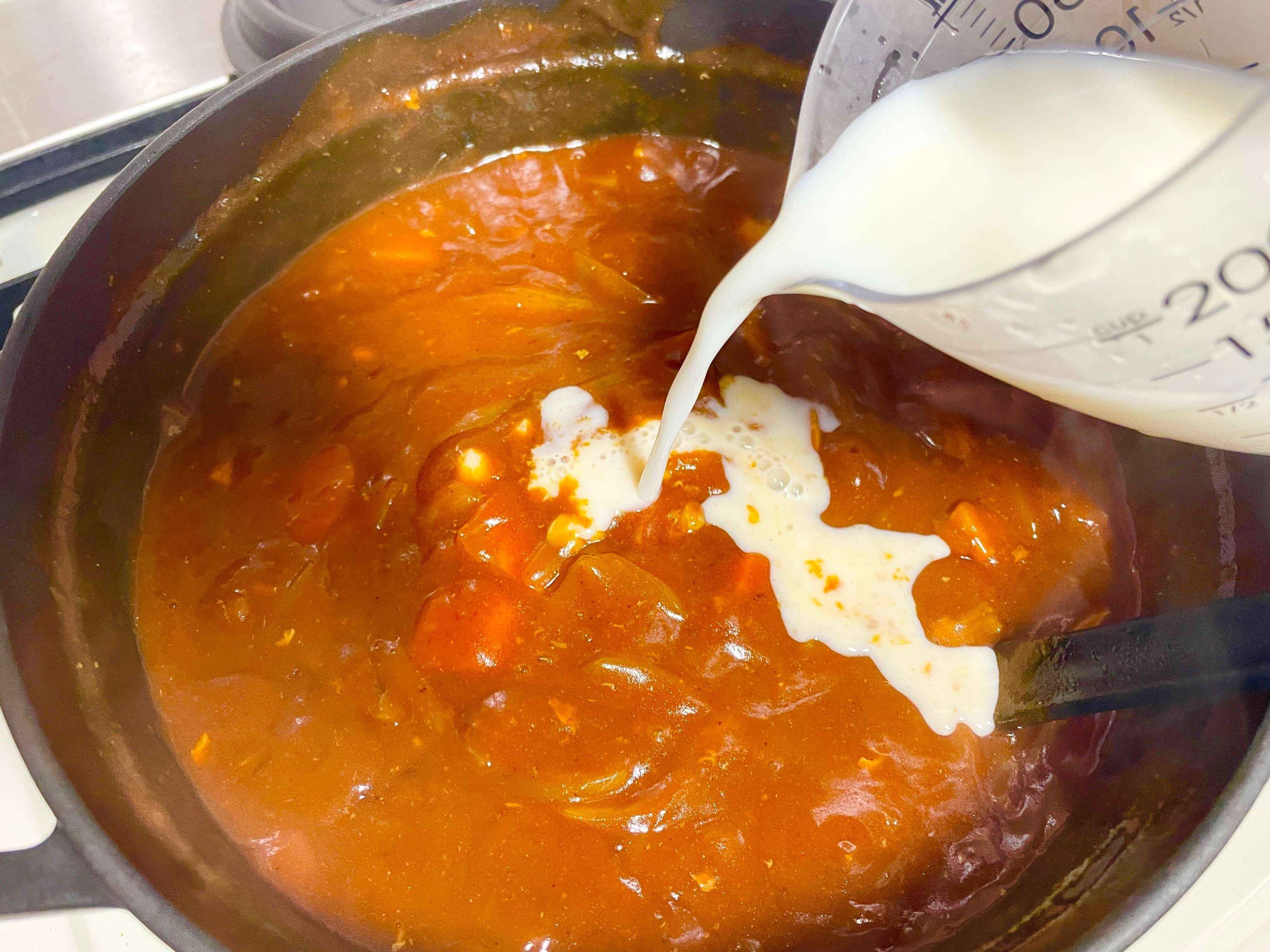 仕上げに牛乳でまろやかに