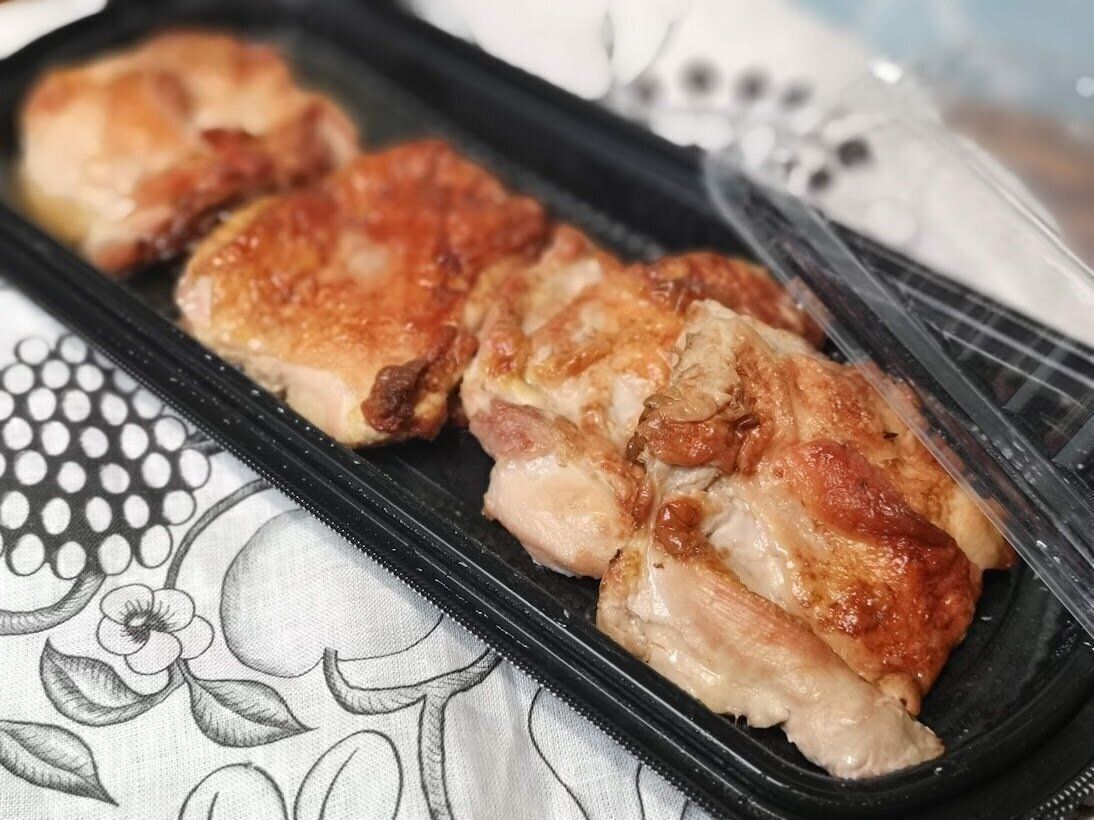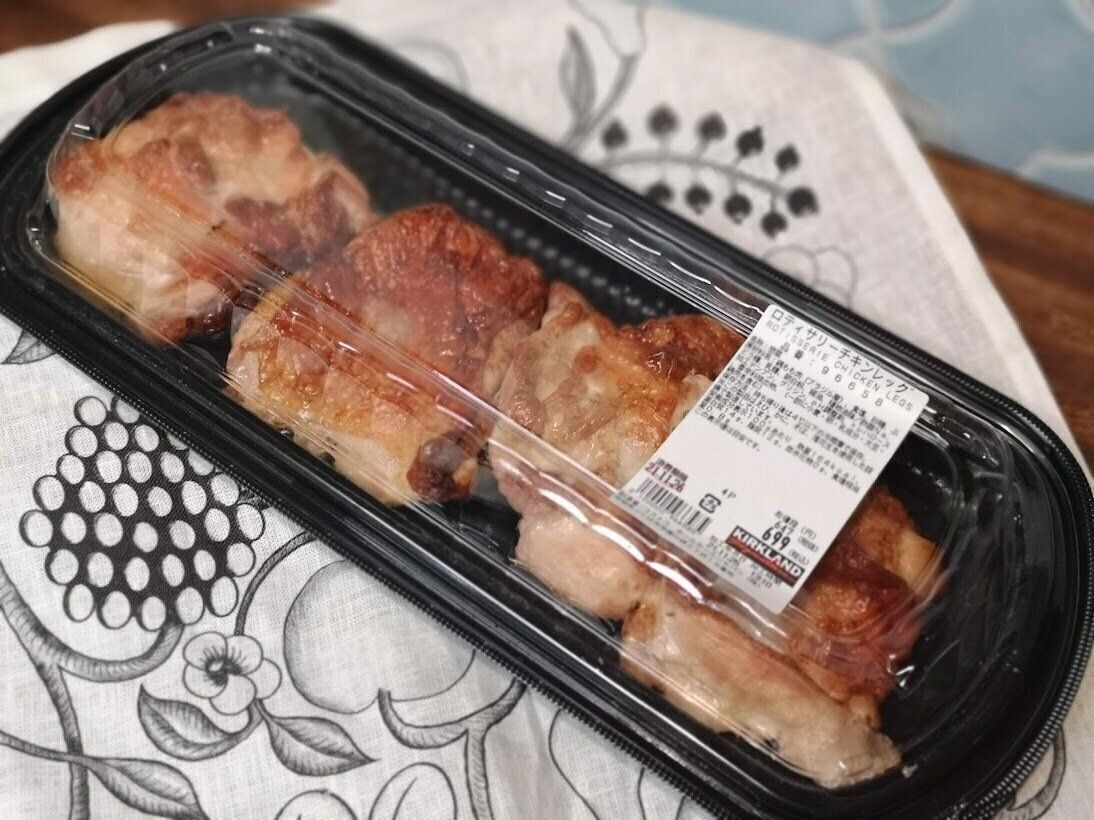 そんなかたにおすすめなのが、こちらの「ロティサリーチキンレッグ」です。こちらは、通常販売されている「ロティサリーチキン」とは別の商品ですが、骨なしのチキンをグリルした商品なので食べやすく、味つけも「ロティサリーチキン」に比べるとややあっさりめです。